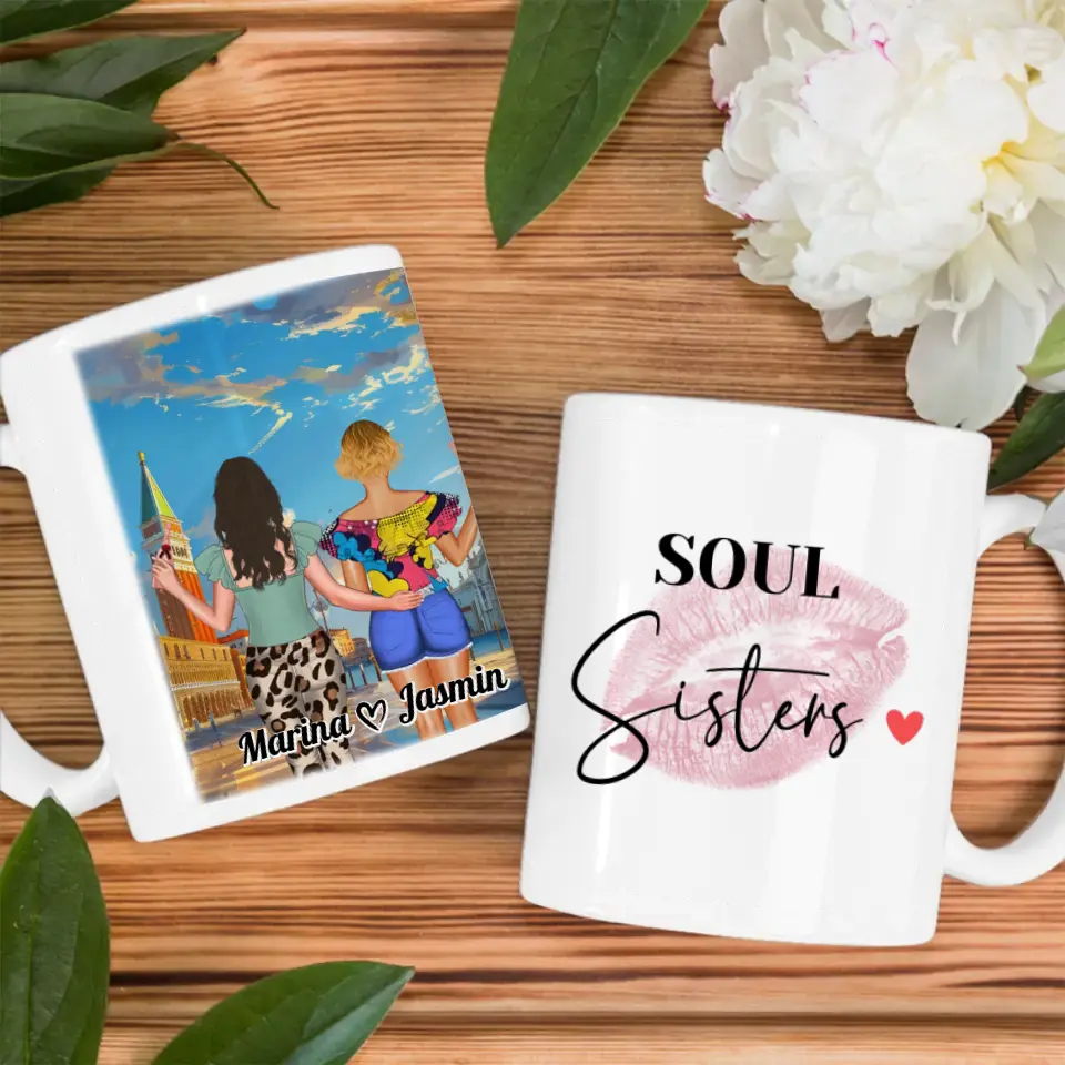 Du suchst ein tolles Geschenk? Dann ist unsere Beste Freundinnen Tasse Italien Mit Namen Soul Sisters das perfekte personalisierbare Geschenk.