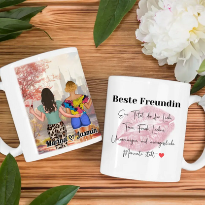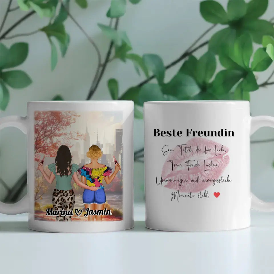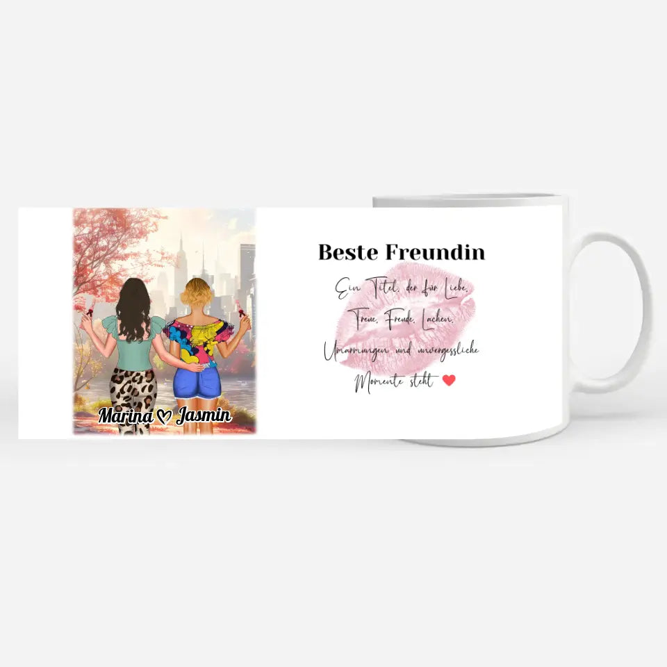 Du magst einzigartige Geschenke? Dann ist unsere Beste Freundinnen Tasse mit Figuren New York Ausblick das perfekte personalisierbare Geschenk.
