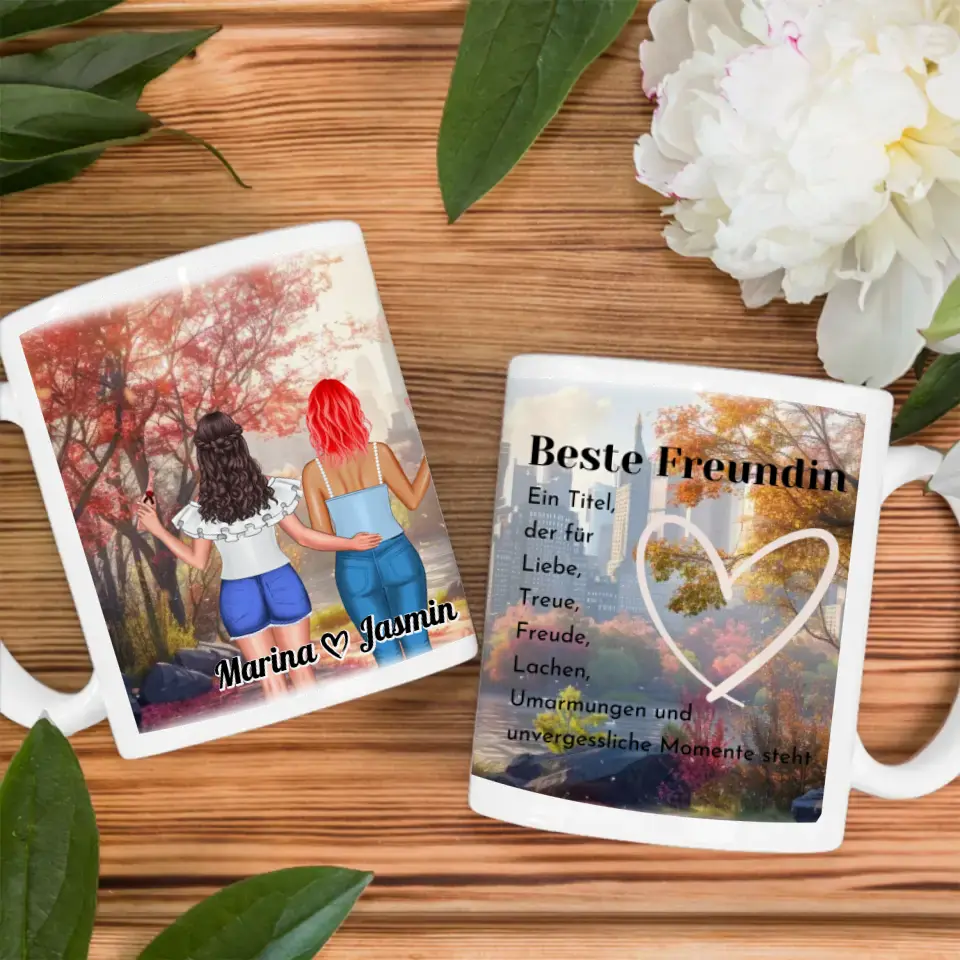 Du suchst ein schönes und individuelles Geschenk? Dann ist unsere Beste Freundinnen Tasse New York Ausblick Viele Kombinationen das perfekte personalisierbare Geschenk.