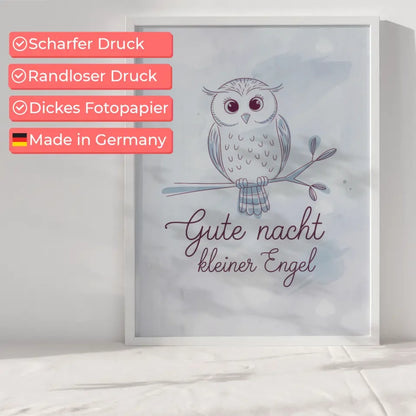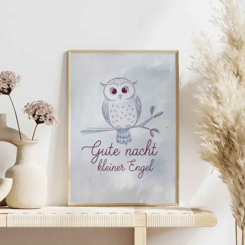 Bezaubernder Eulen Poster Gute Nacht Engel in sanften Pastellfarben