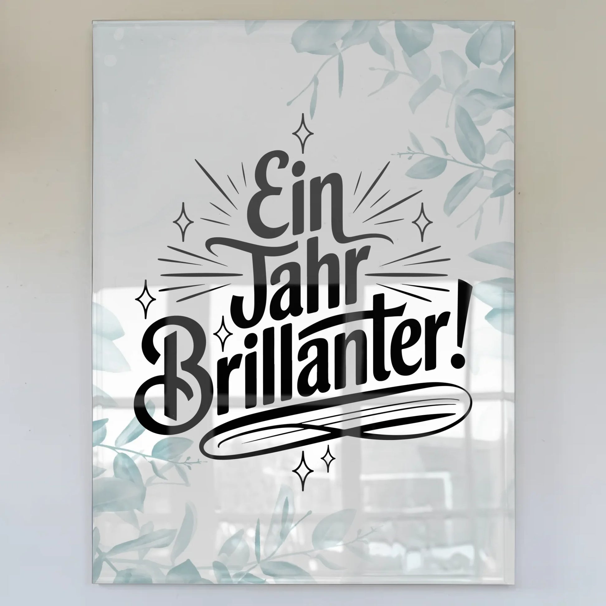 Entdecke das perfekte personalisierte Geschenk für jeden Anlass: das Bild Aus Acrylglas Ein Jahr Brillanter Geschenkideen. Mit diesem einzigartigen Produkt kannst du ein Hintergrundbild deiner Wahl hinzufügen und so eine ganz persönliche Note verleihen. Ob als tägliche Motivation oder positive Affirmation, dieses Bild wird mit einem schönen Spruch zu einem echten Hingucker in jedem Raum.