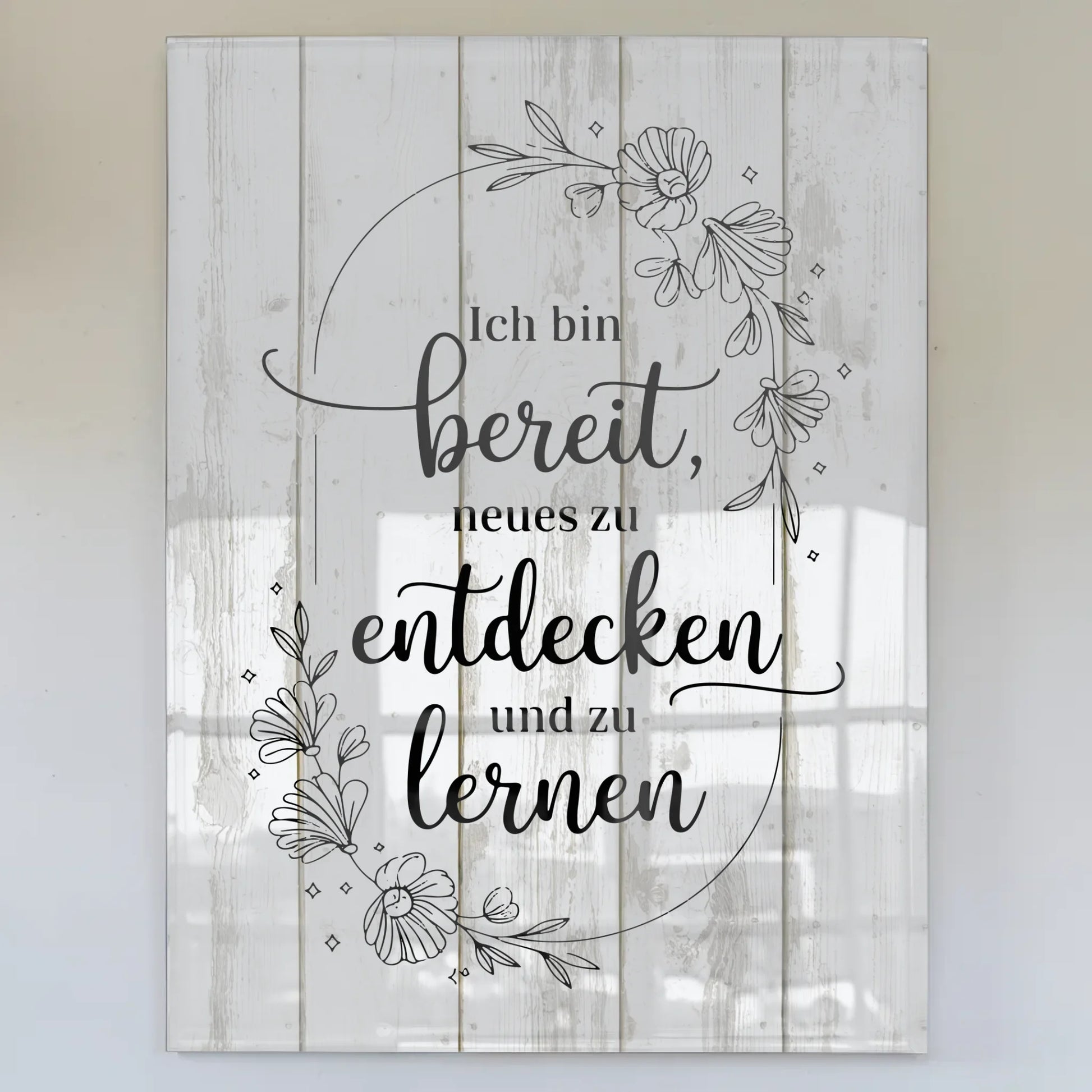 Mit dem schönen Spruch 'Ich bin bereit, Neues zu entdecken und zu lernen' wird dieses Bild zur idealen positive Affirmation, die dich täglich begleitet. Ob als Geschenkidee für Freunde oder als persönliche Motivation – dieses Bild aus Acrylglas bringt positive Energie in jeden Raum.
