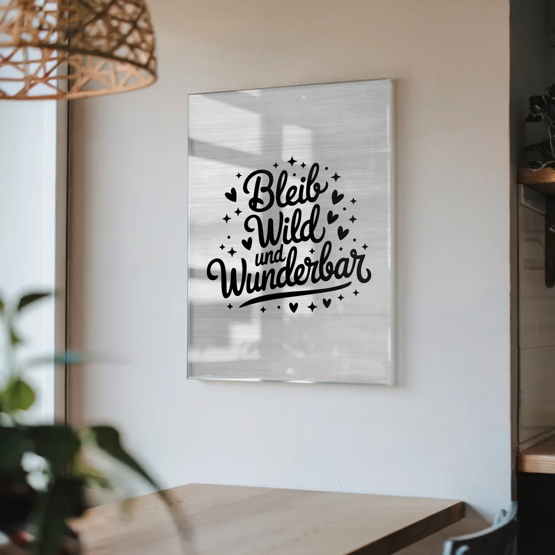 Egal ob als Geschenkidee für Freunde oder Familie, dieses Bild ist ein echter Hingucker. Die hochwertige Verarbeitung mit Acrylglas sorgt für brillante Farben und eine edle Optik. Der Spruch 'Bleib wild und wunderbar' erinnert dich daran, jeden Tag mit Freude und Zuversicht zu beginnen.