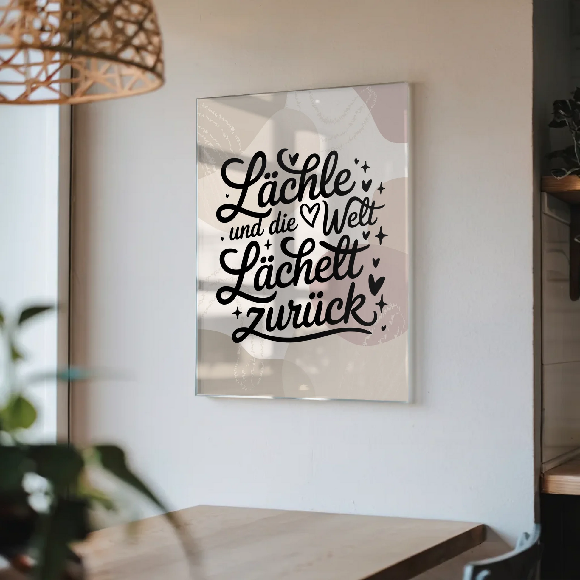 Der schöne Spruch 'Lächle und die Welt lächelt zurück' ist eine tägliche Motivation und positive Affirmation, die dich daran erinnert, positiv zu bleiben. Diese Geschenkidee eignet sich hervorragend als inspirierendes Dekorationsstück oder als liebevolles Präsent für Freunde und Familie.