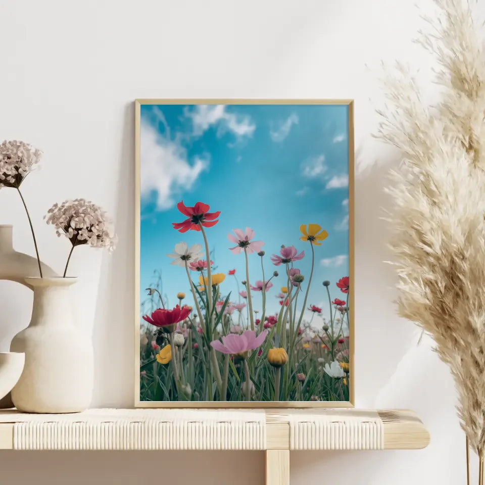 Blumen Poster vor blauem Himmel für ein frühlingshaftes Zimmer