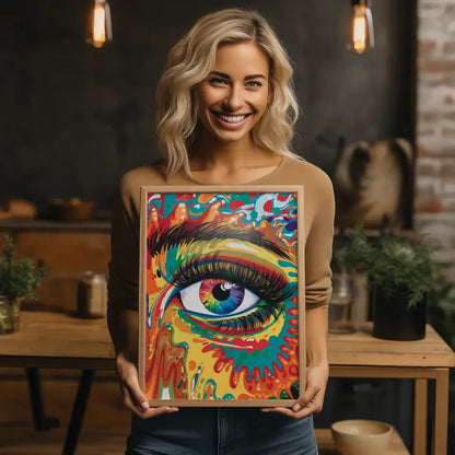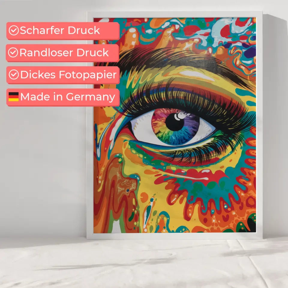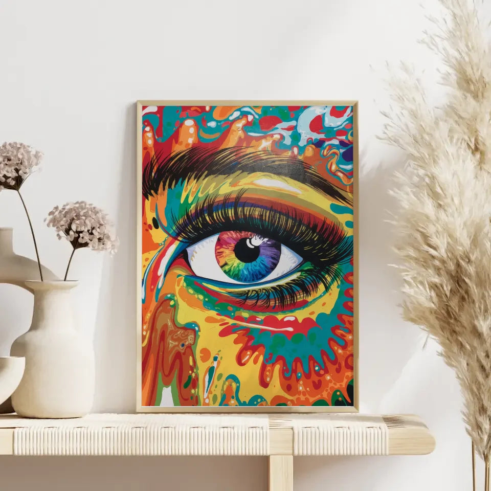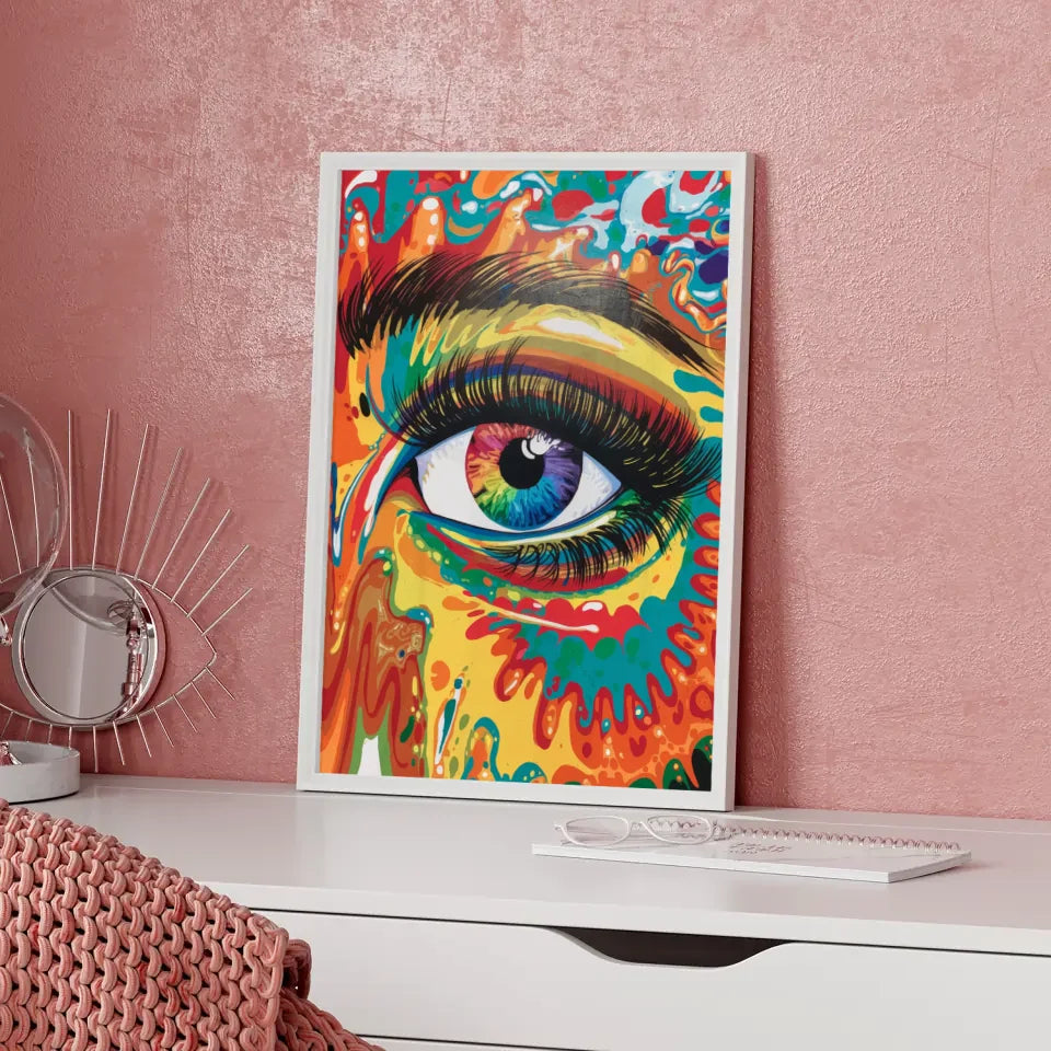 Buntes Poster mit farbenfrohem Augen-Motiv für kreative Räume