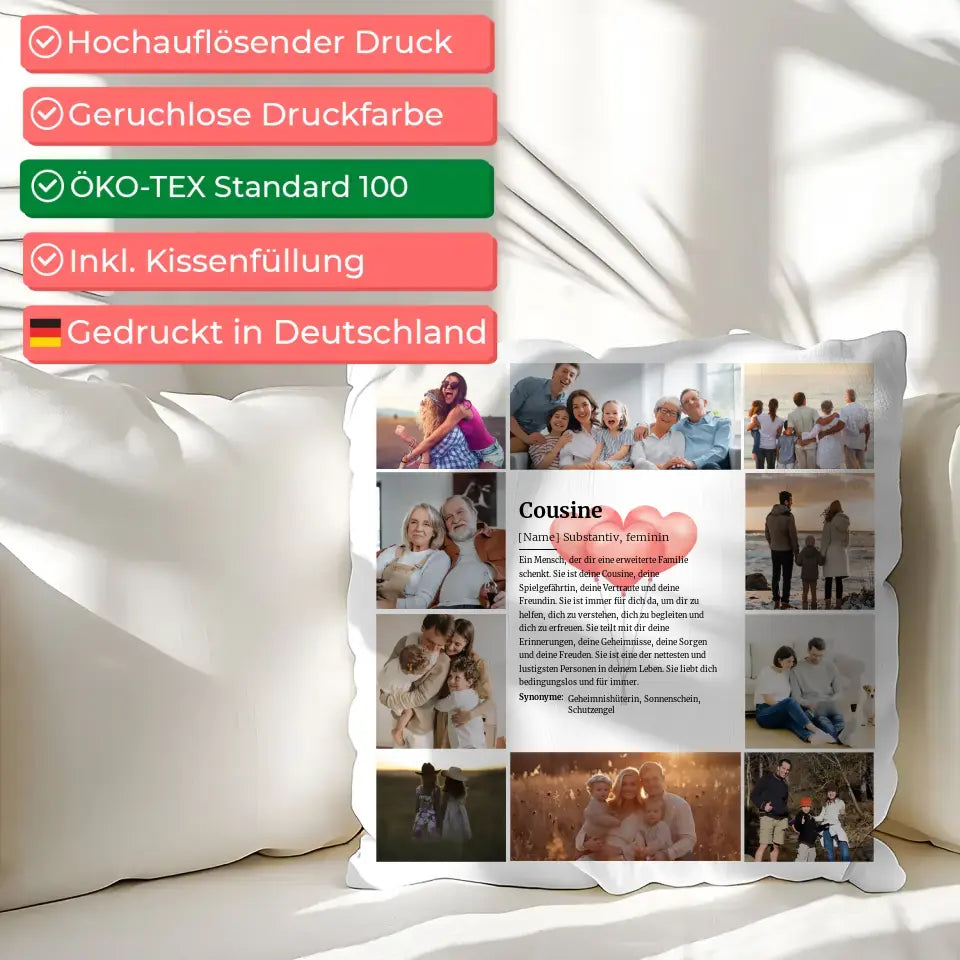 Cousine Definition Personalisiertes Kissen mit 10 Fotos