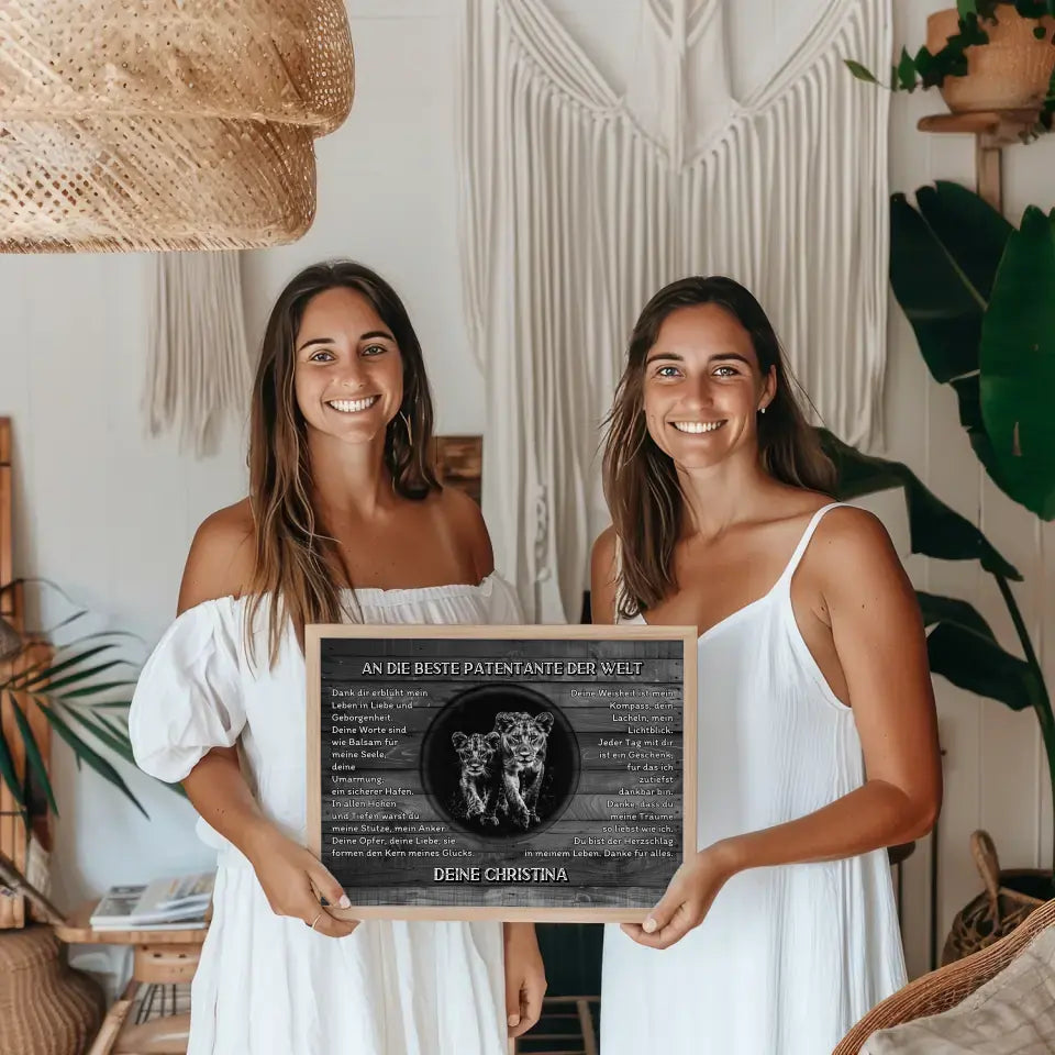 Du möchtest etwas einzigartiges verschenken? Dann ist Unser Dankes Poster mit Löwen für Patentante Schwarz Weiß ein perfektes und super schönes personalisiertes Geschenk.