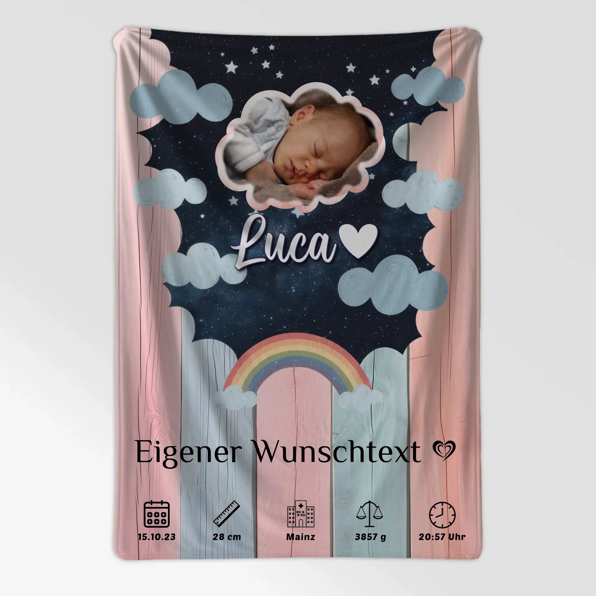Entdecke die perfekte Geschenkidee zur Geburt: Unsere Decke Zur Geburt Mit Namen Holz Bunt Baby Geschenk. Diese personalisierte Decke ist ein einzigartiges Andenken für Jungen & Mädchen und wird mit viel Liebe zum Detail gestaltet. Du kannst den Namen des Babys, das Hintergrundbild sowie die Geburtsdaten wie Gewicht, Größe, Uhrzeit und Datum individuell anpassen. Zudem hast du die Möglichkeit, ein Foto hinzuzufügen, um das Geschenk noch persönlicher zu gestalten.