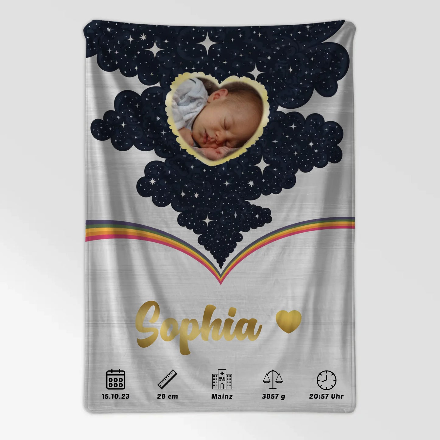 Unsere Decke eignet sich hervorragend als Geburtsgeschenk und ist eine wunderbare Erinnerung an diesen besonderen Tag. Egal ob für Jungen oder Mädchen, diese Decke wird garantiert zum Highlight in jedem Kinderzimmer. Sie ist nicht nur ein praktisches Accessoire, sondern auch ein wunderschönes Plakat zur Geburt, das die ersten Momente des neuen Erdenbürgers festhält.