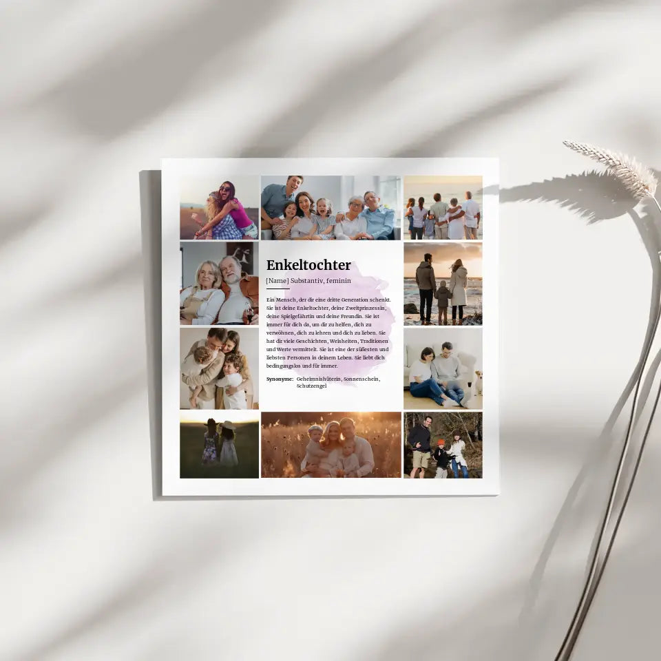 Unsere Definition Enkeltochter Fotocollage Leinwand personalisiert 10 Fotos Küsschen