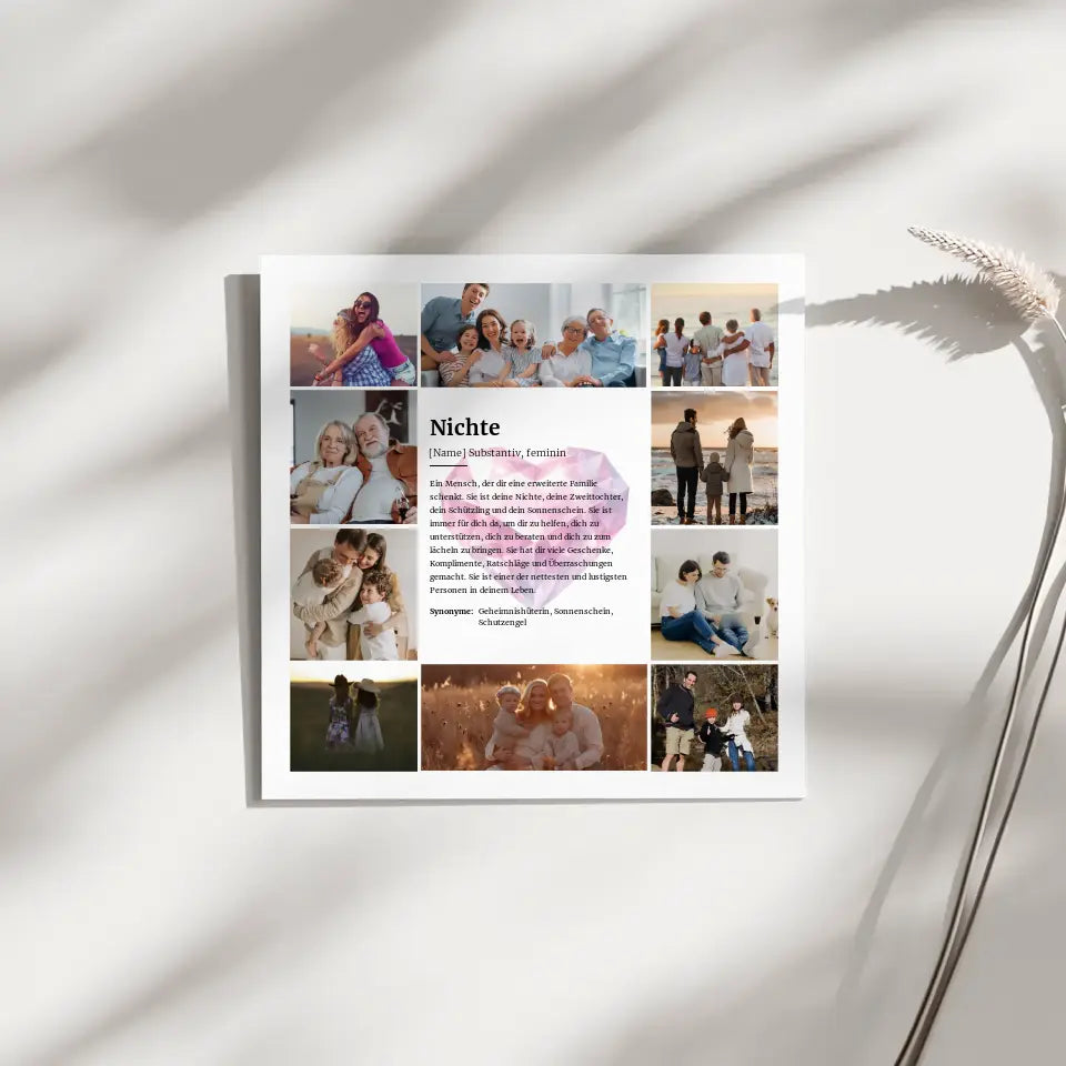 Definition Nichte Fotocollage Leinwand personalisiert Herz Kristall