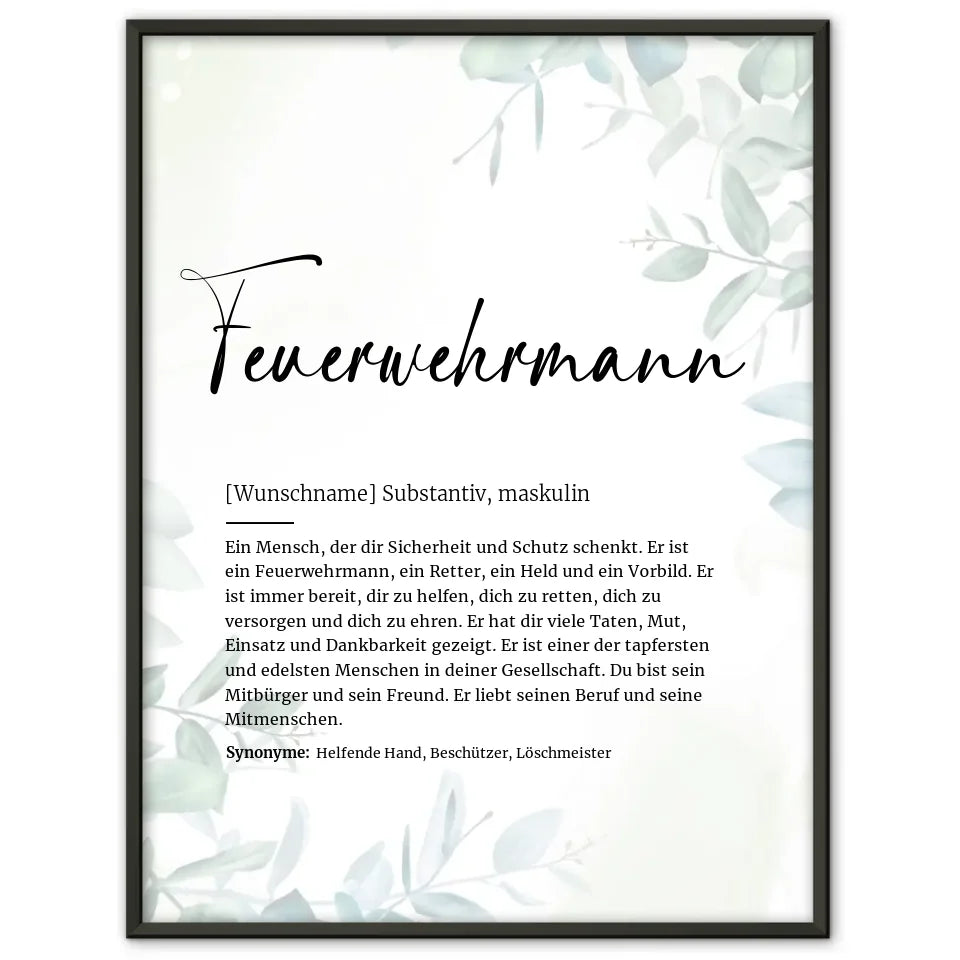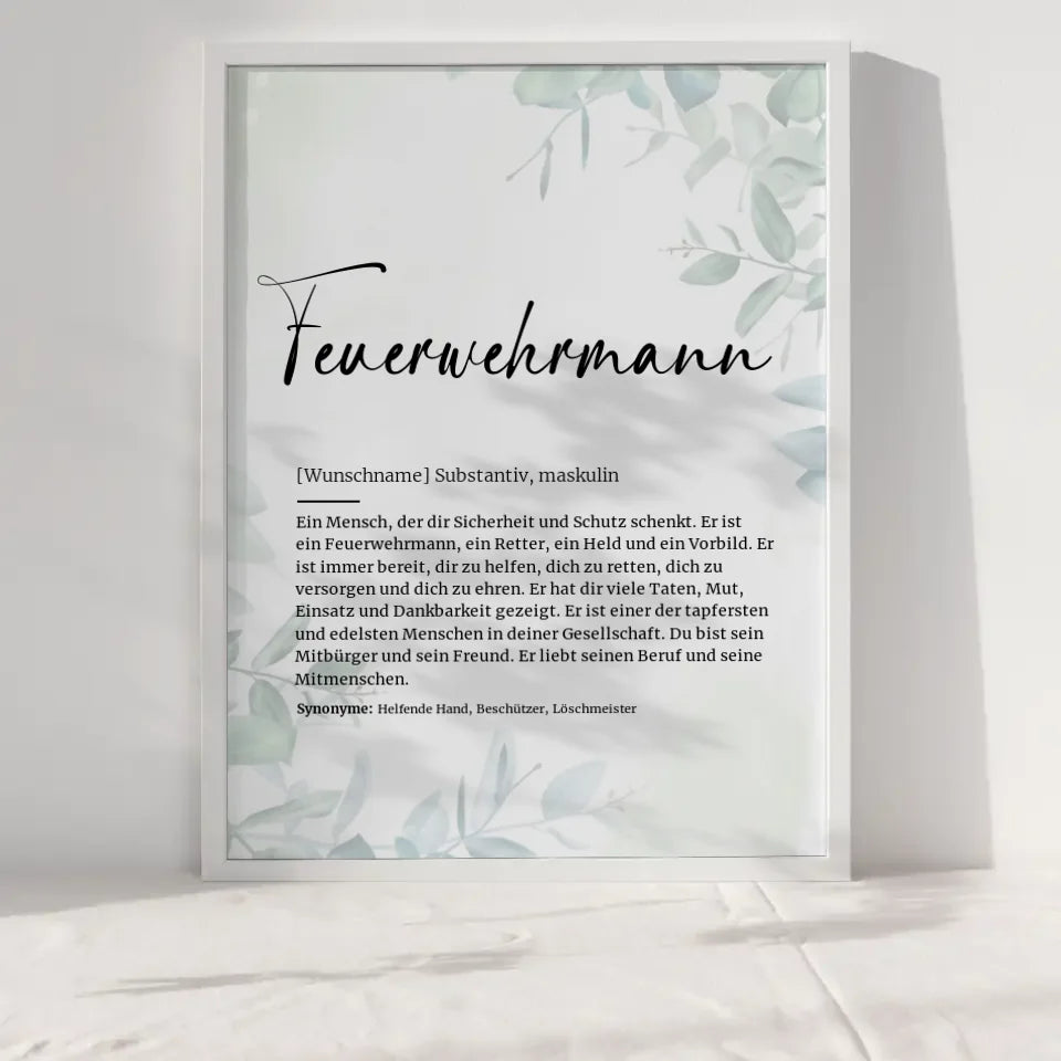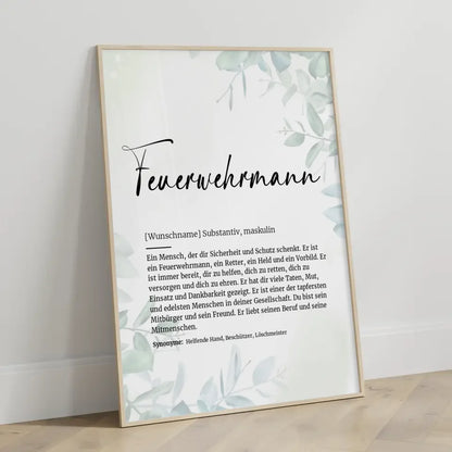 Unser Definitionsposter Definition Feuerwehrmann Mit Name