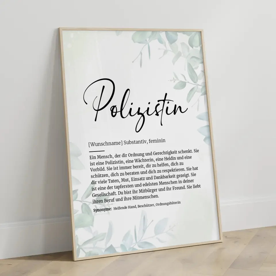 Dieses personalisierte Poster ist ein wunderschönes Geschenk für alle Polizistinnen. Perfekt zum Geburtstag oder auch zu Weihnachten