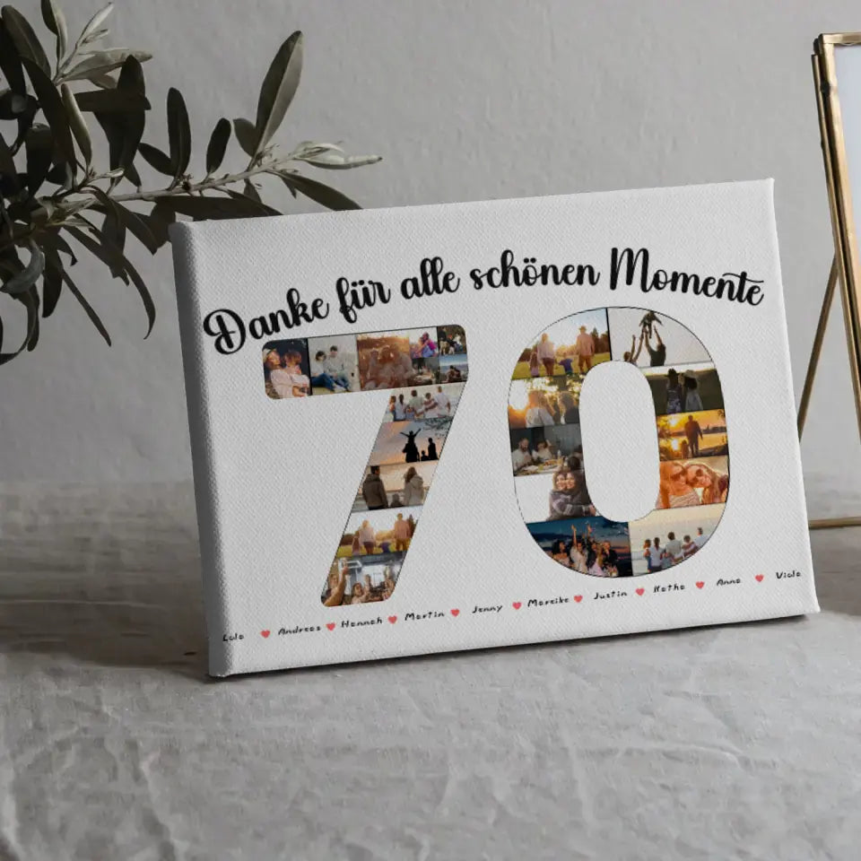 Eigenes Design Leinwand 70 Geburtstag Danke für Momente mit Fotos