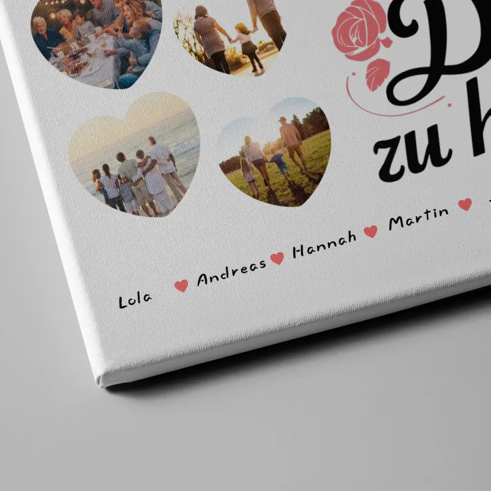 Du kannst bei diesem schönen Design 16 Fotos & 20 Namen ganz individuell personalisieren.