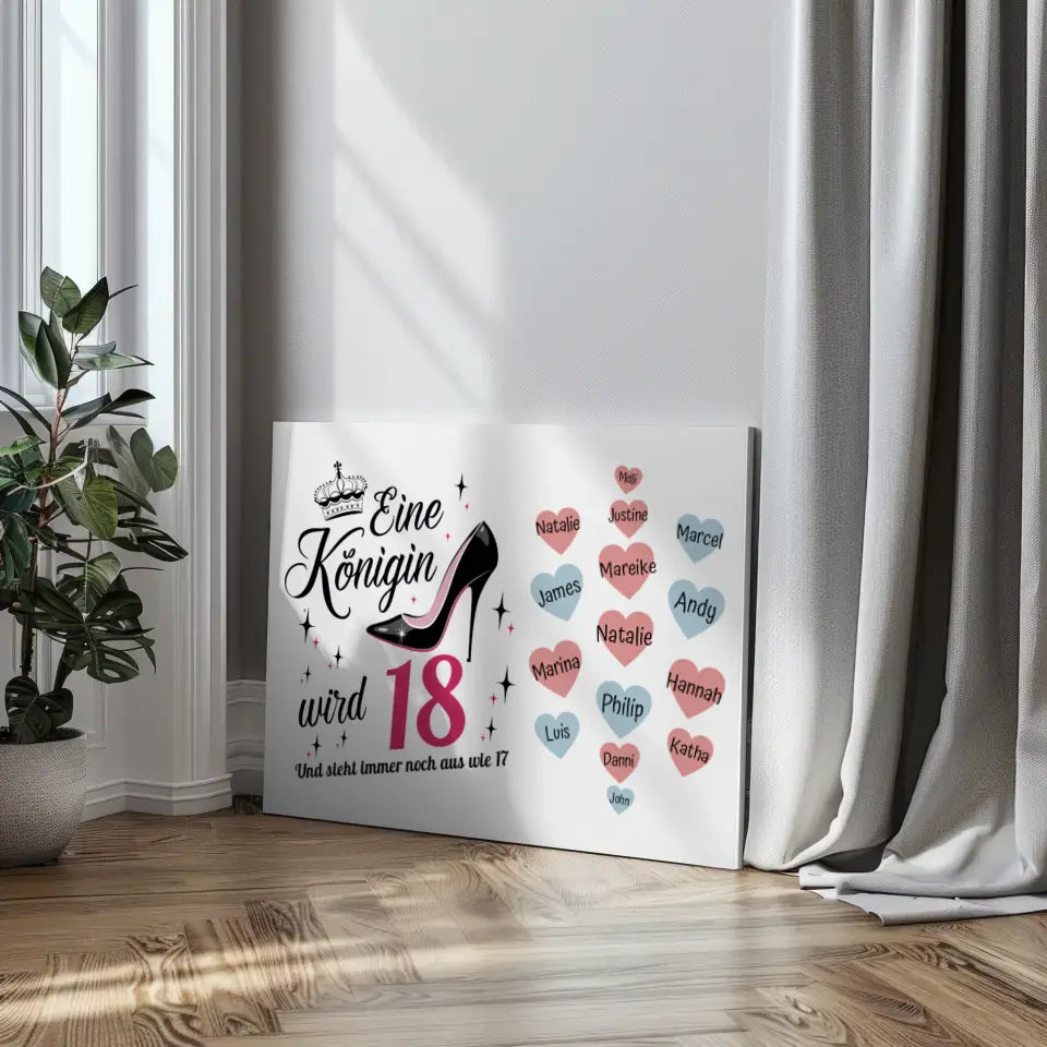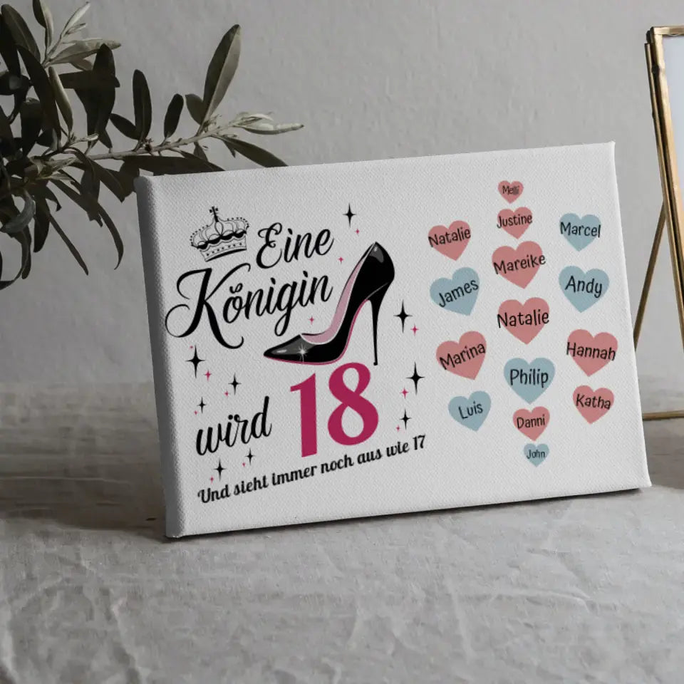 Eigenes Design Leinwand Königin wird 18 Geburtstag mit 19 Namen