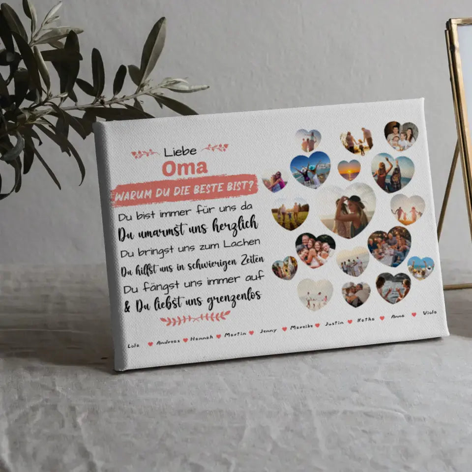 Du magst einzigartige Geschenke? Dann ist Unsere Eigenes Design Leinwand Oma Geburtstag Warum du die beste bist ein perfektes und super schönes personalisiertes Geschenk.