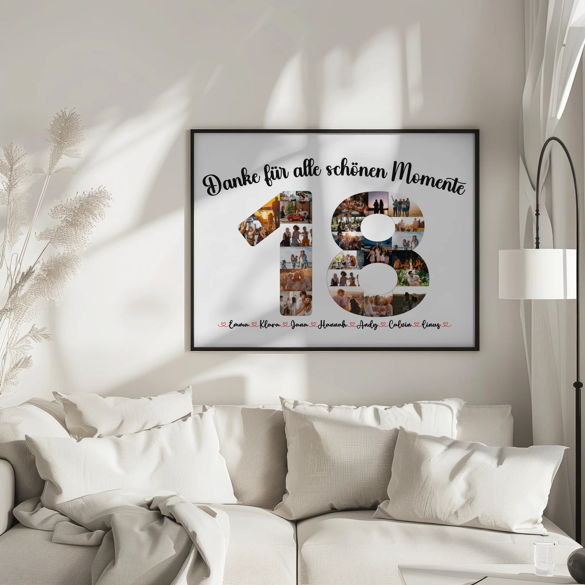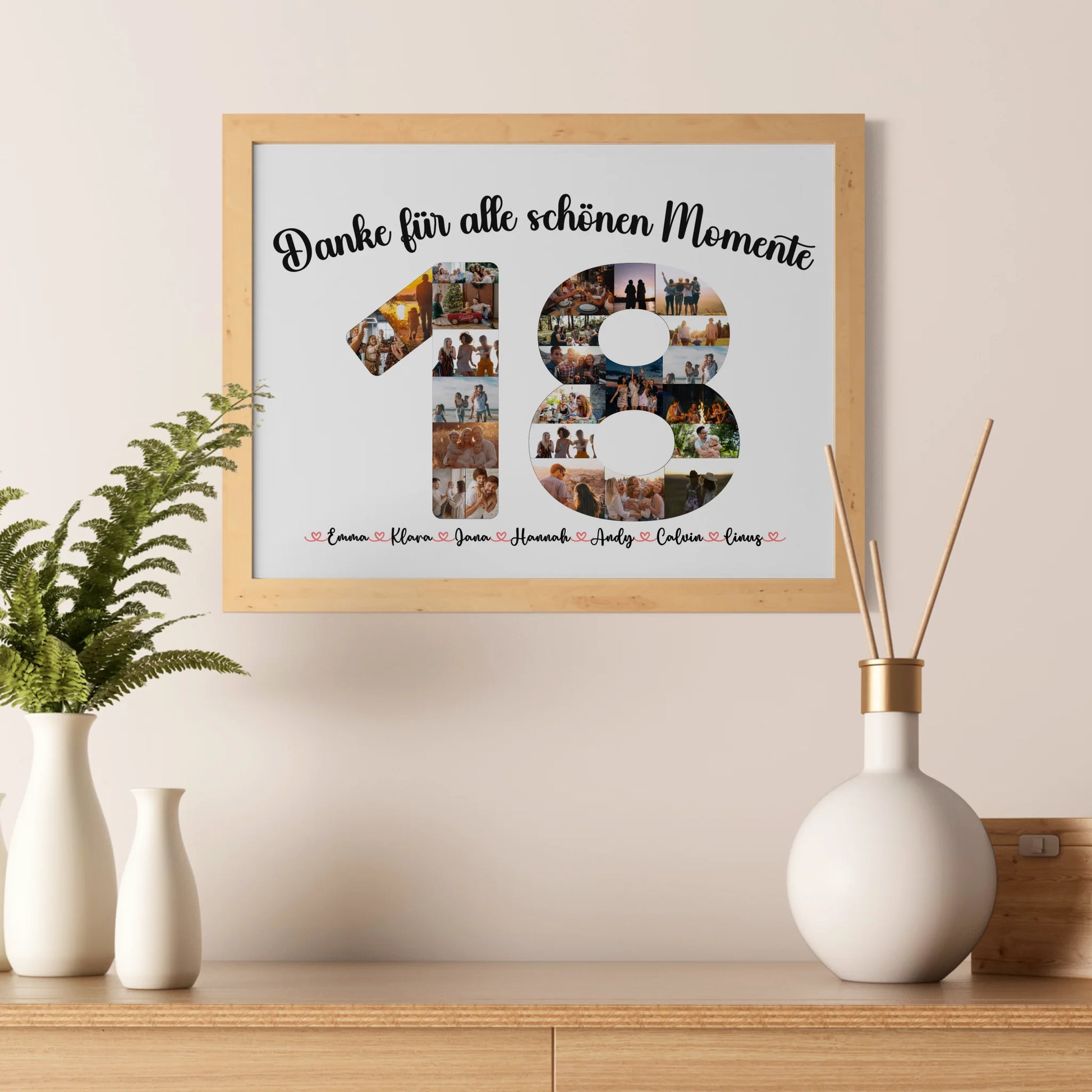 Unser Eigenes Design Poster 18 Geburtstag Danke für Momente mit Fotos