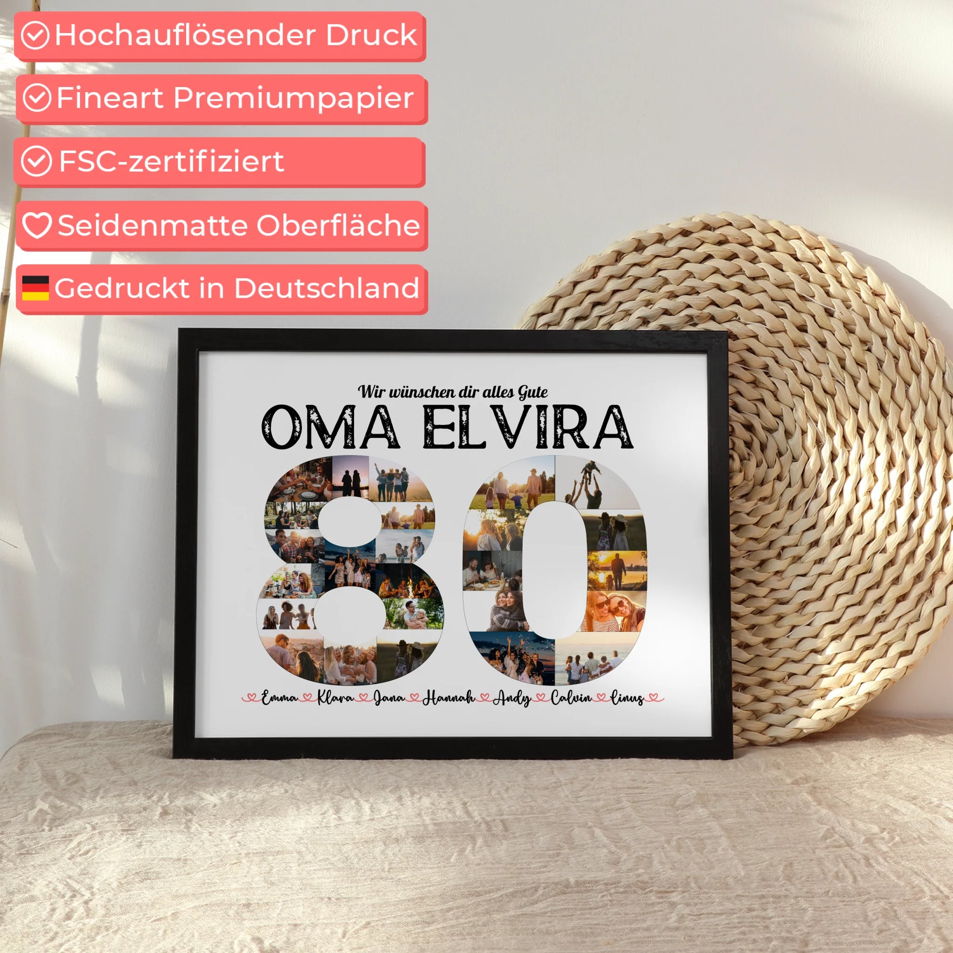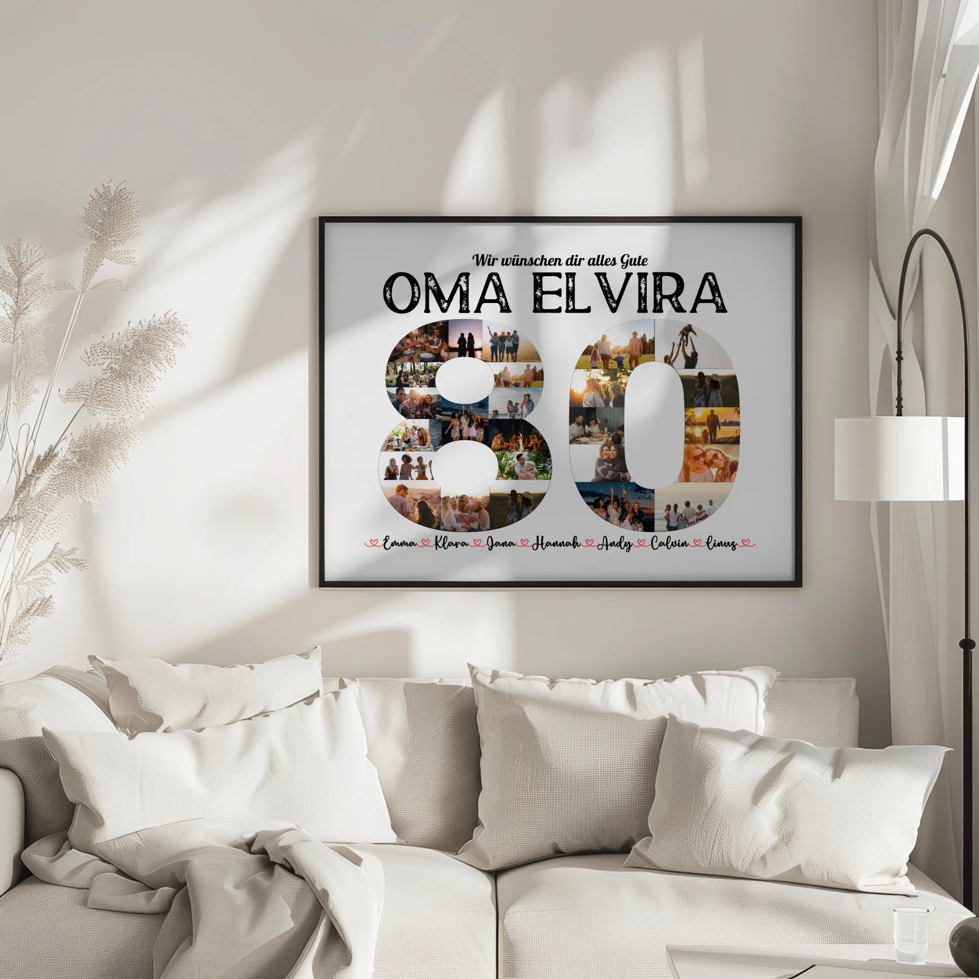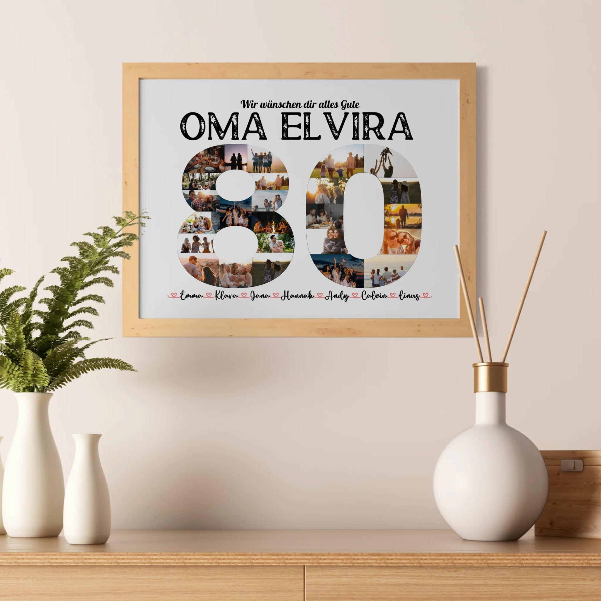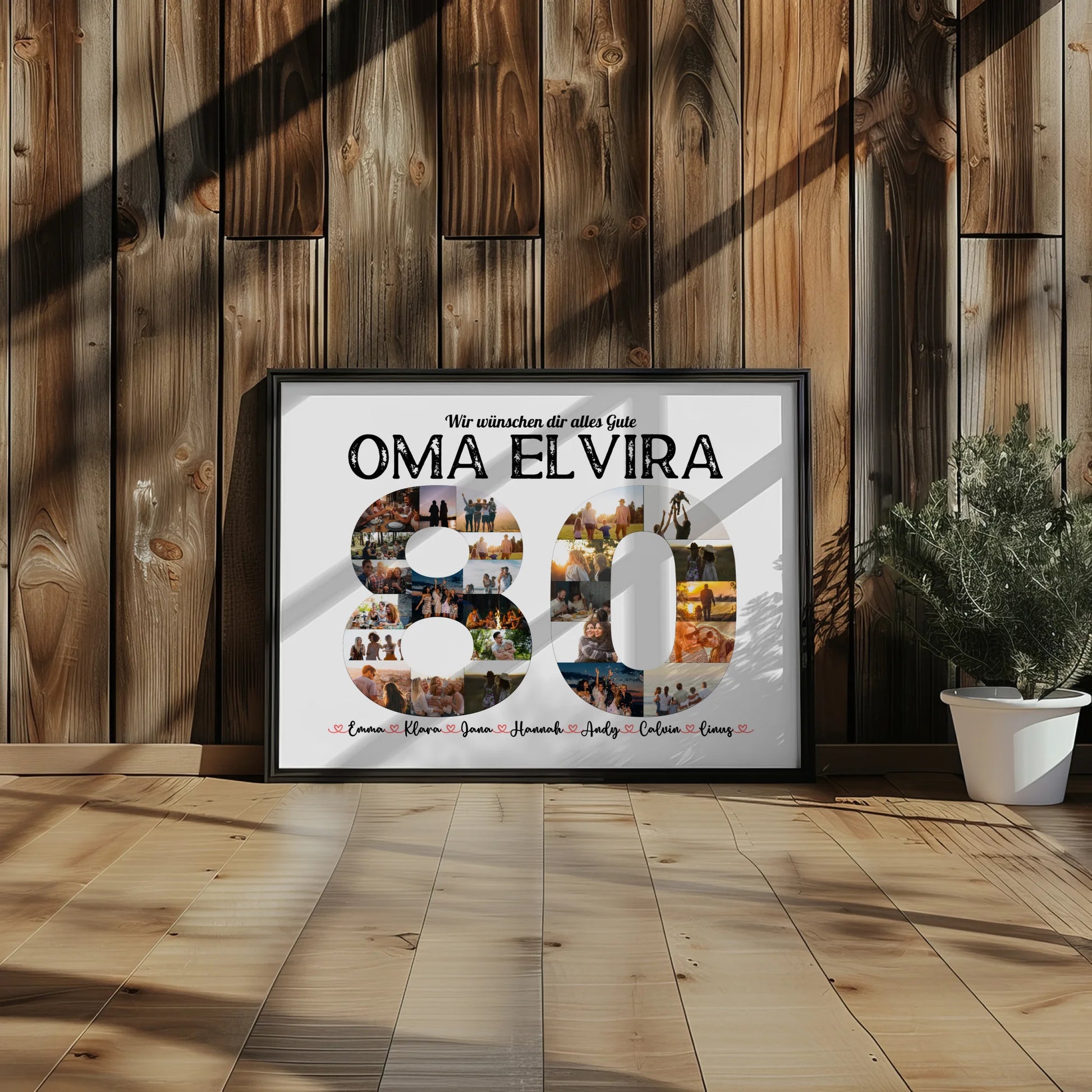 Unser Eigenes Design Poster 80 Geburstag mit Name & Fotos in Zahlen