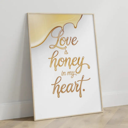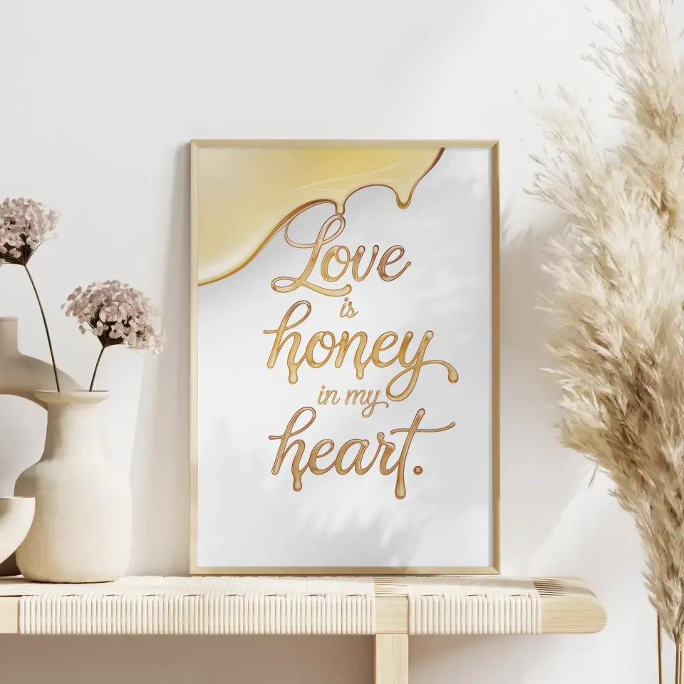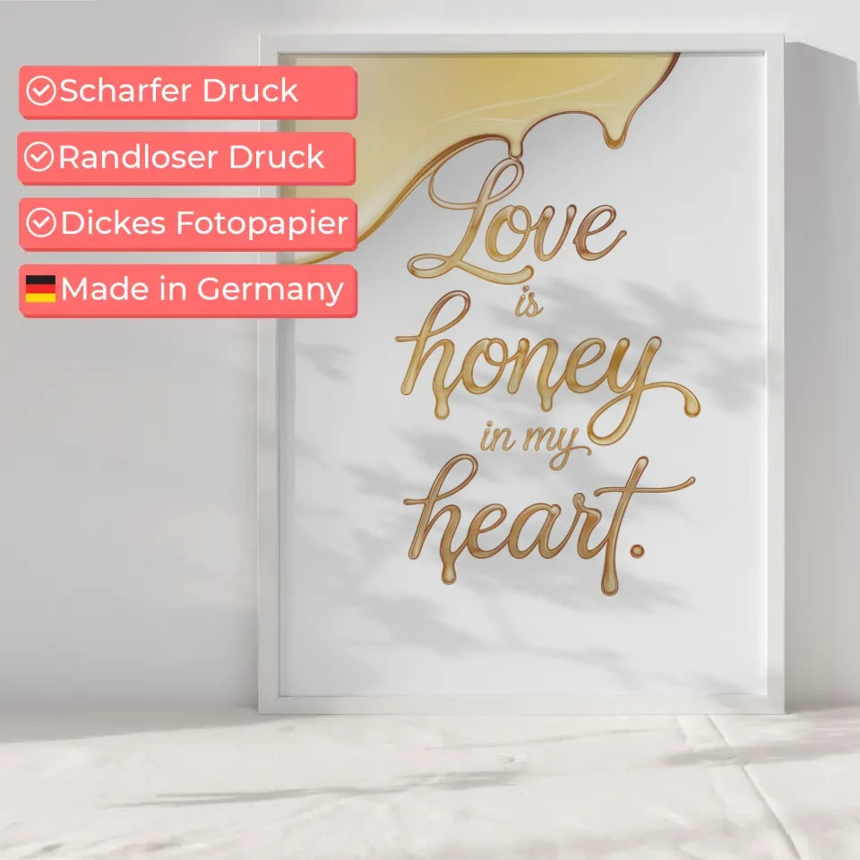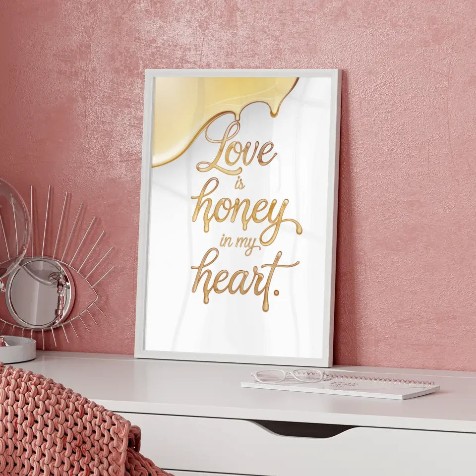 Eleganter Poster mit Zitat Love is honey in my heart in Gold