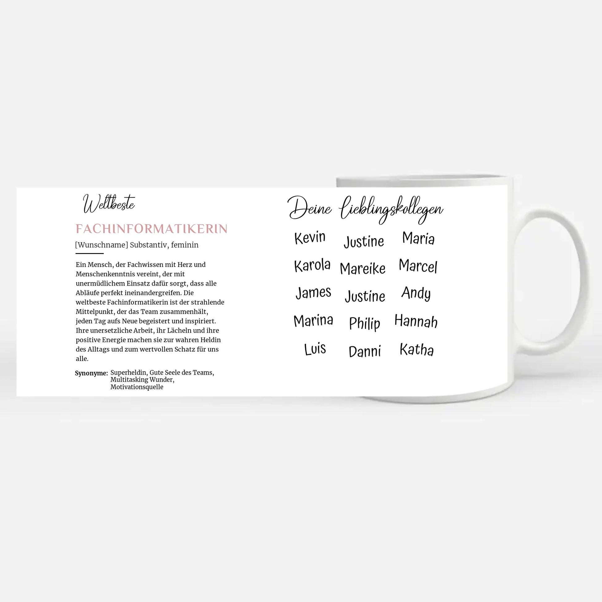 Diese personalisierte Tasse ist perfekt für alle Fachinformatikerinnen . Also perfekt als Jubiläumsgeschenk oder zum Abschied .