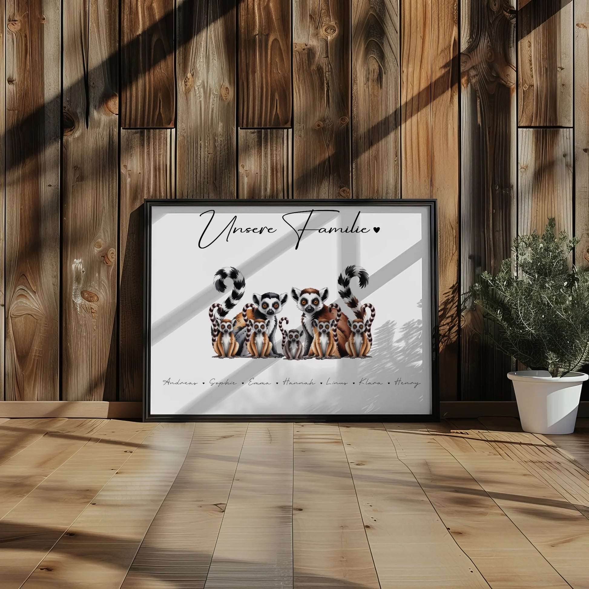 Familie Personalisiert Poster Lemur Geschenk für Mama Papa Oma Opa – Dein einzigartiges Familienporträt