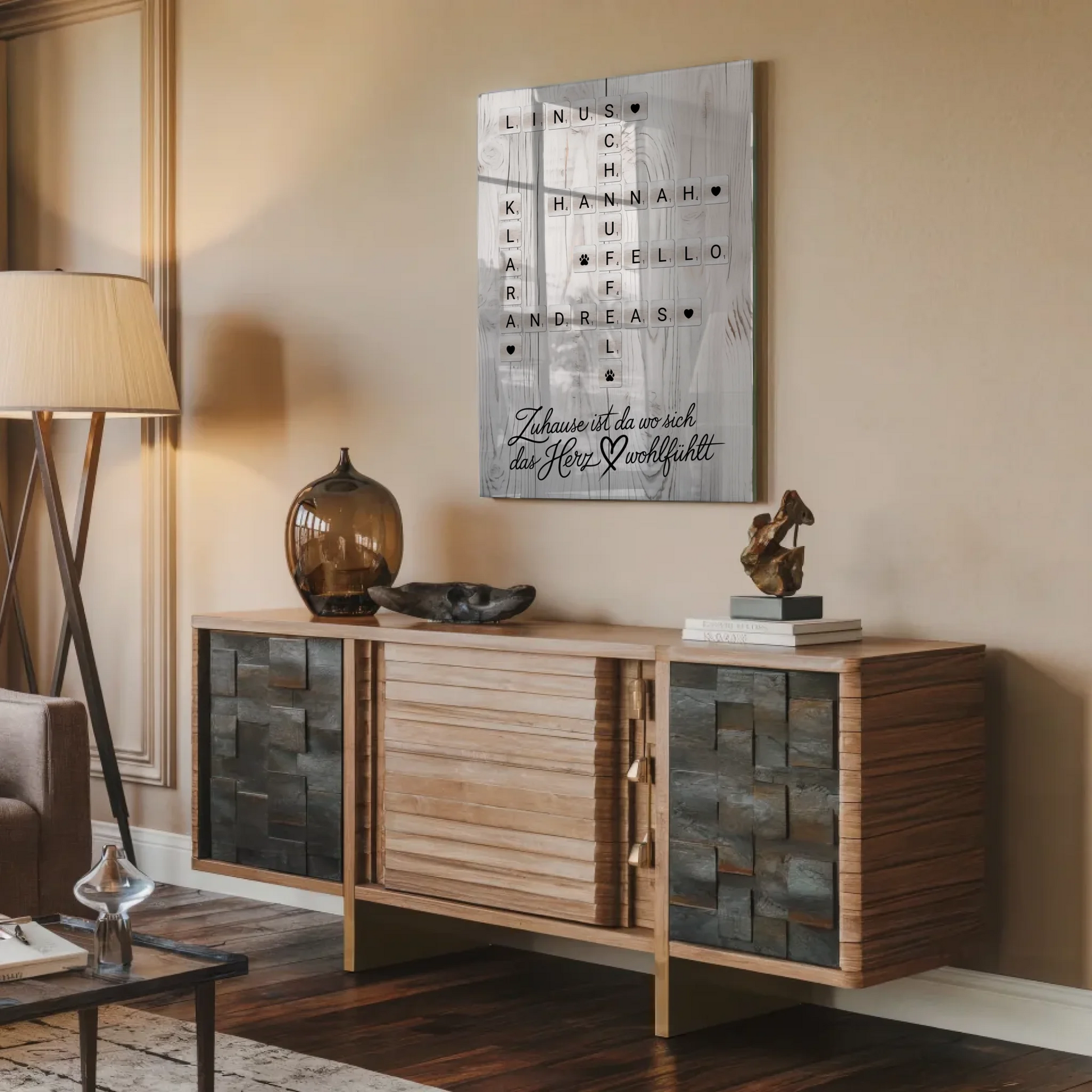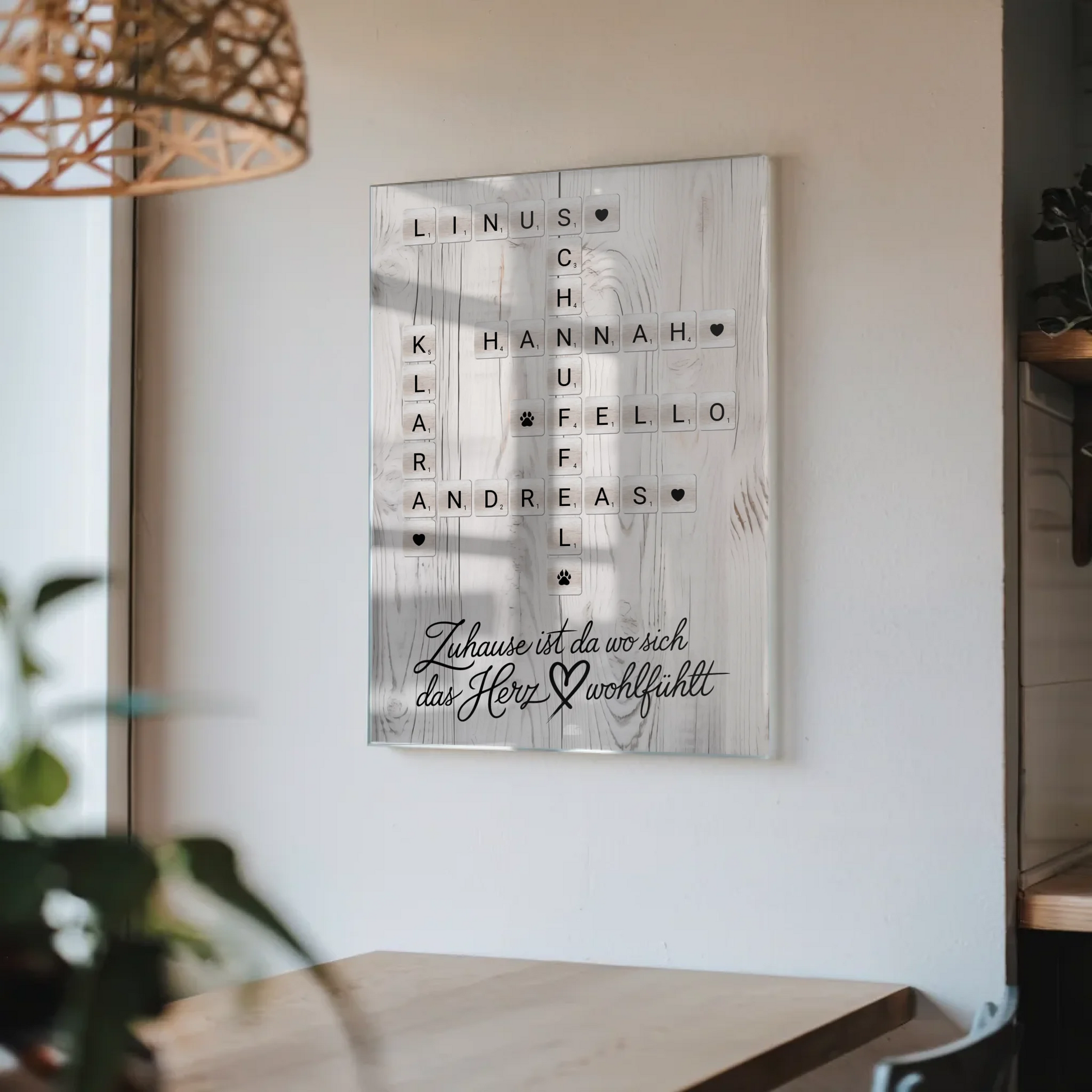 Familien Acrylglas Bild KreuzwortrĂ€tsel mit Namen Herz WohlfĂŒhlt