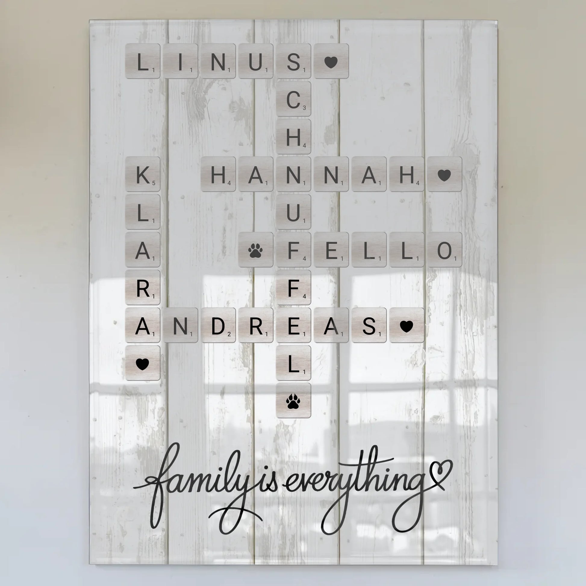 Familien Acrylglas Bild Scrabble Style mit Namen Wunschtext