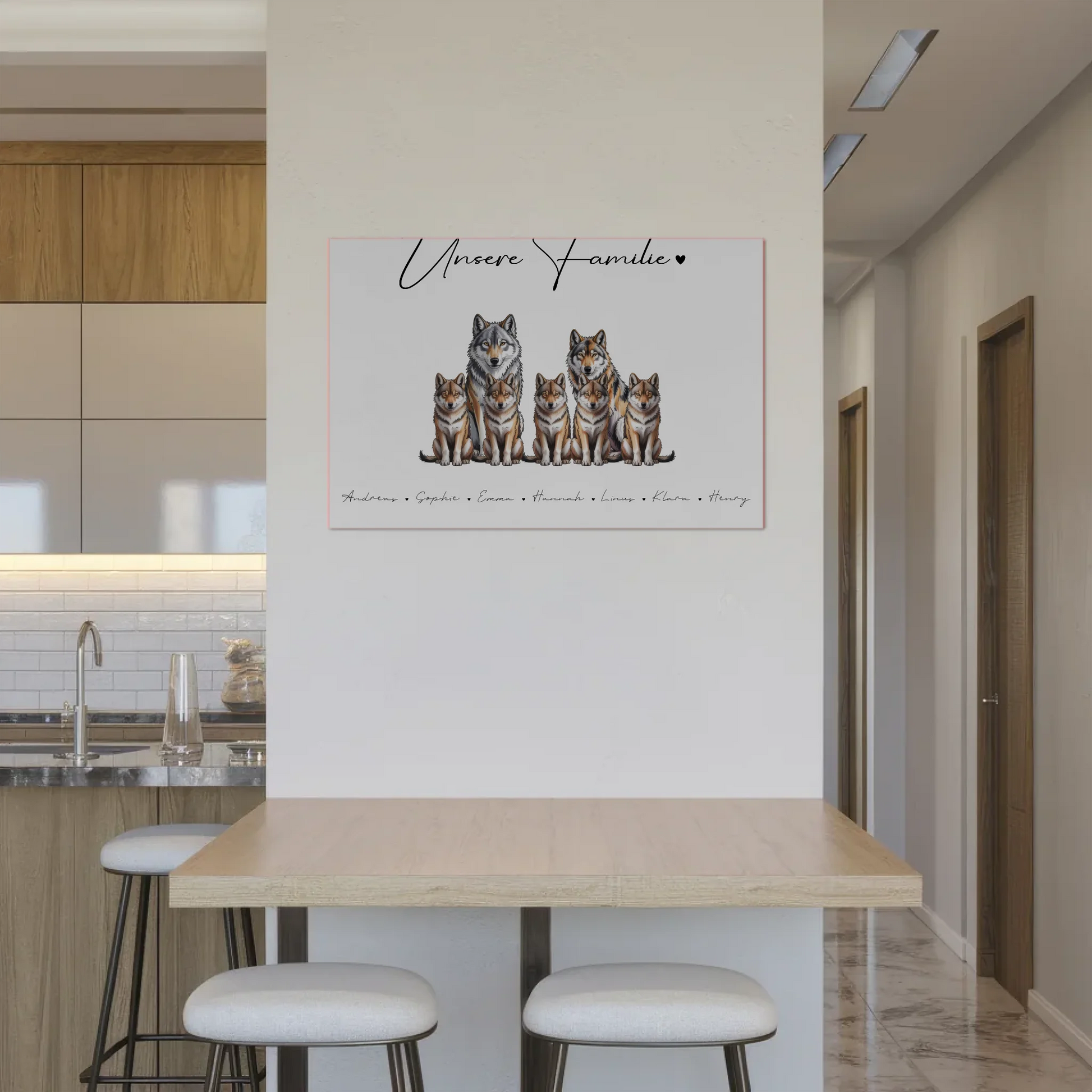 Familien Fotoboard Magnet Wandbild Mit Namen Wolf Familienporträt Geschenk für Mama Papa Oma Opa