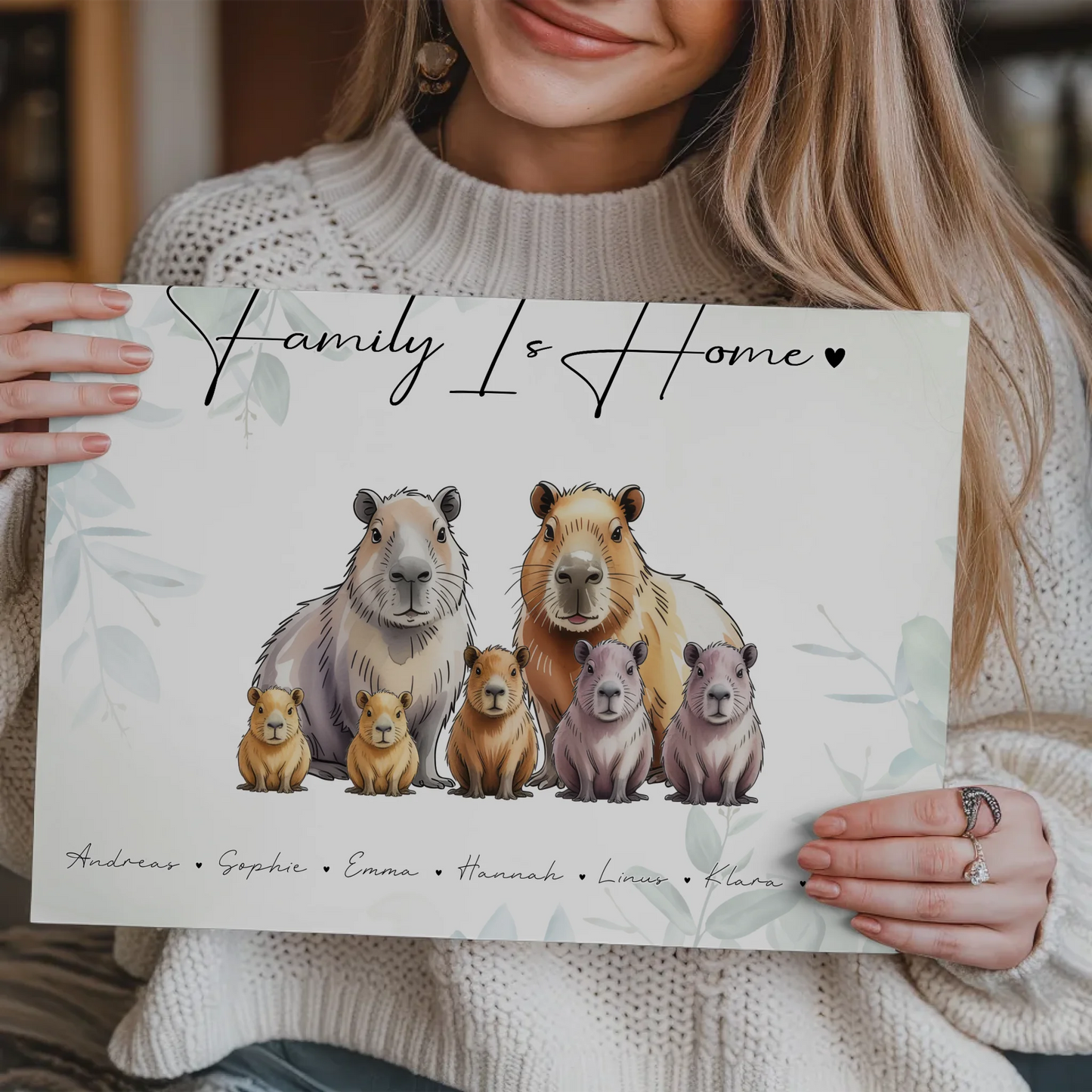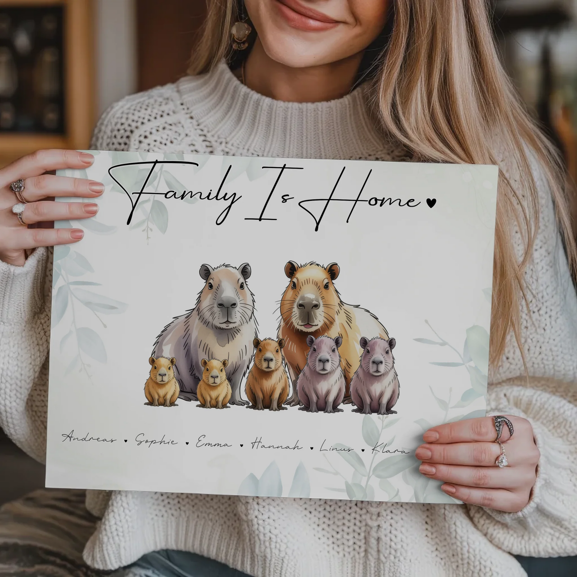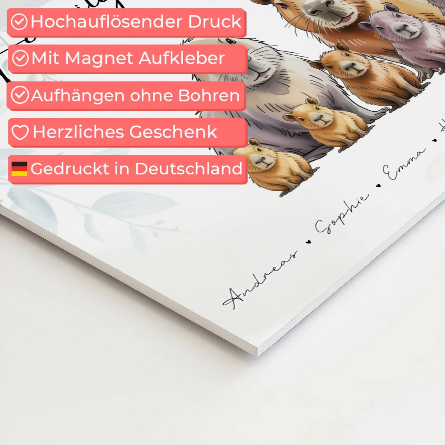 Familien Fotoboard Personalisiert Capybara Familienporträt Geschenk für Mama Papa Oma Opa