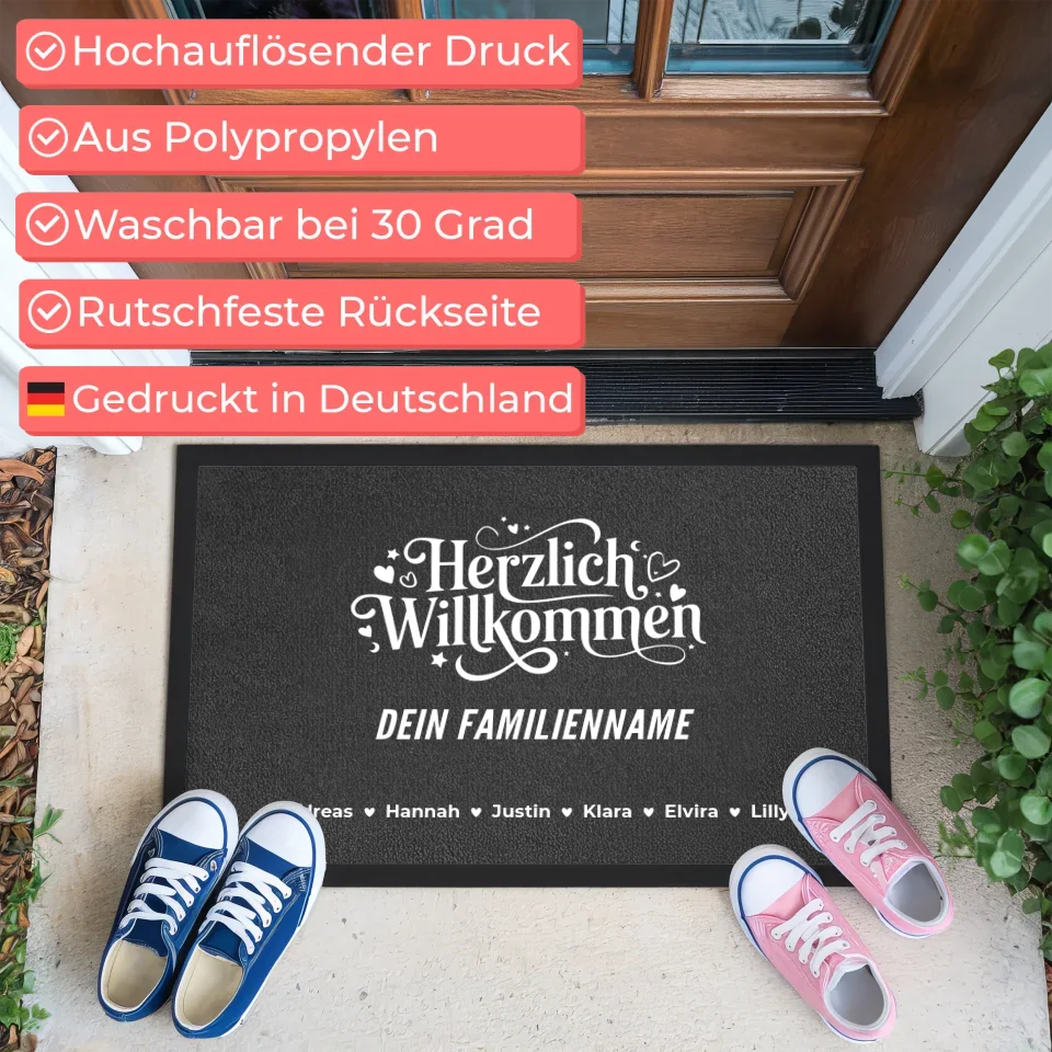 Familien Fußmatte personalisiert Herzlich Willkommen Mit Namen