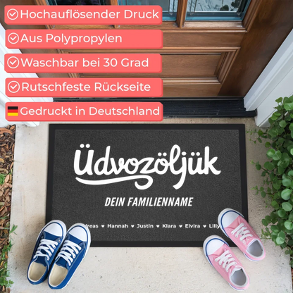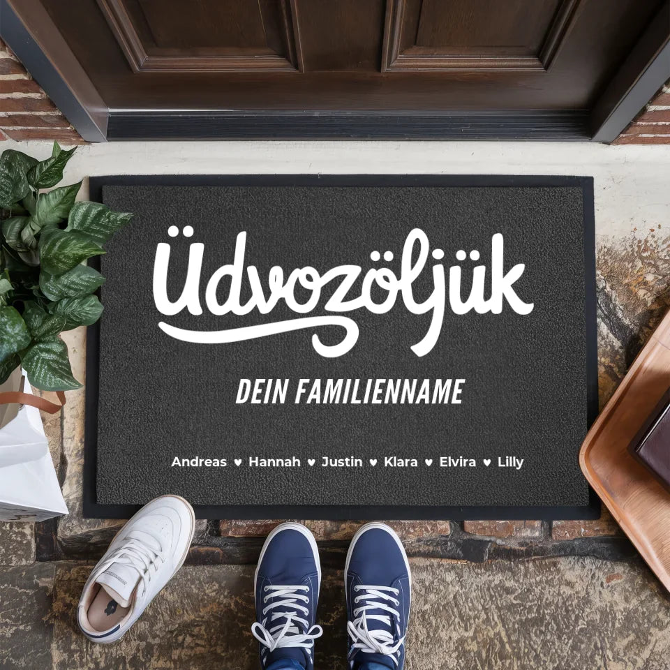 Familien Fußmatte personalisiert Nachname Willkommen Üdvözöljük