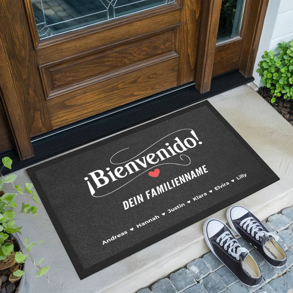 Entdecke die perfekte Möglichkeit, dein Zuhause mit Stil und Persönlichkeit zu begrüßen – mit unserer Familien Fußmatte personalisiert Willkommen Üdvözöljük Mit Namen. Diese einzigartige Fußmatte ist nicht nur ein praktischer Fußabtreter, sondern auch ein liebevolles Willkommen für Familie und Gäste. Gestalte die Fußmatte ganz nach deinen Wünschen, indem du den Familiennamen, individuelle Namen sowie einen eigenen Spruch oder Wunschtext hinzufügst. So wird die Fußmatte zu einem ganz besonderen Unikat, das dein Zuhause charmant ergänzt.