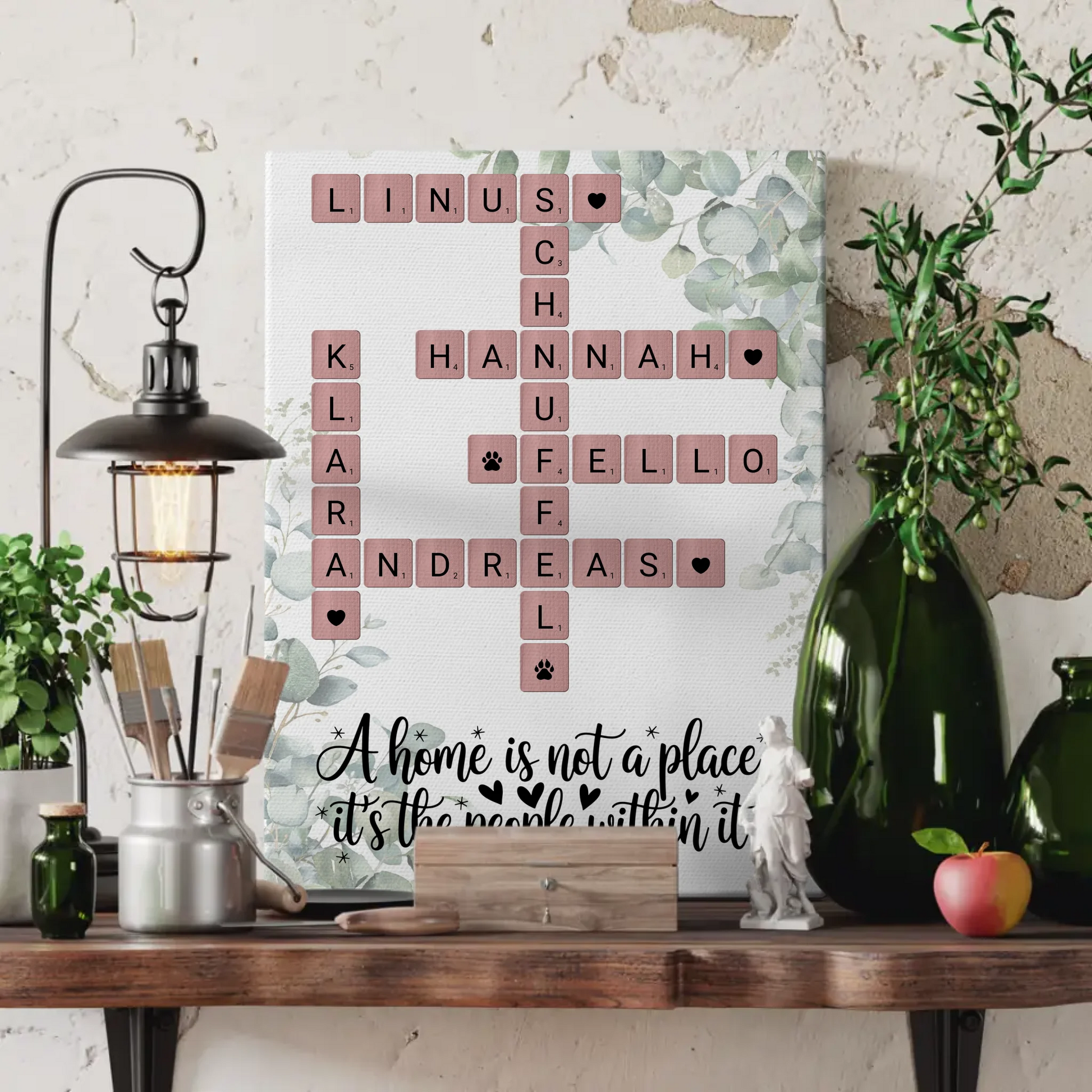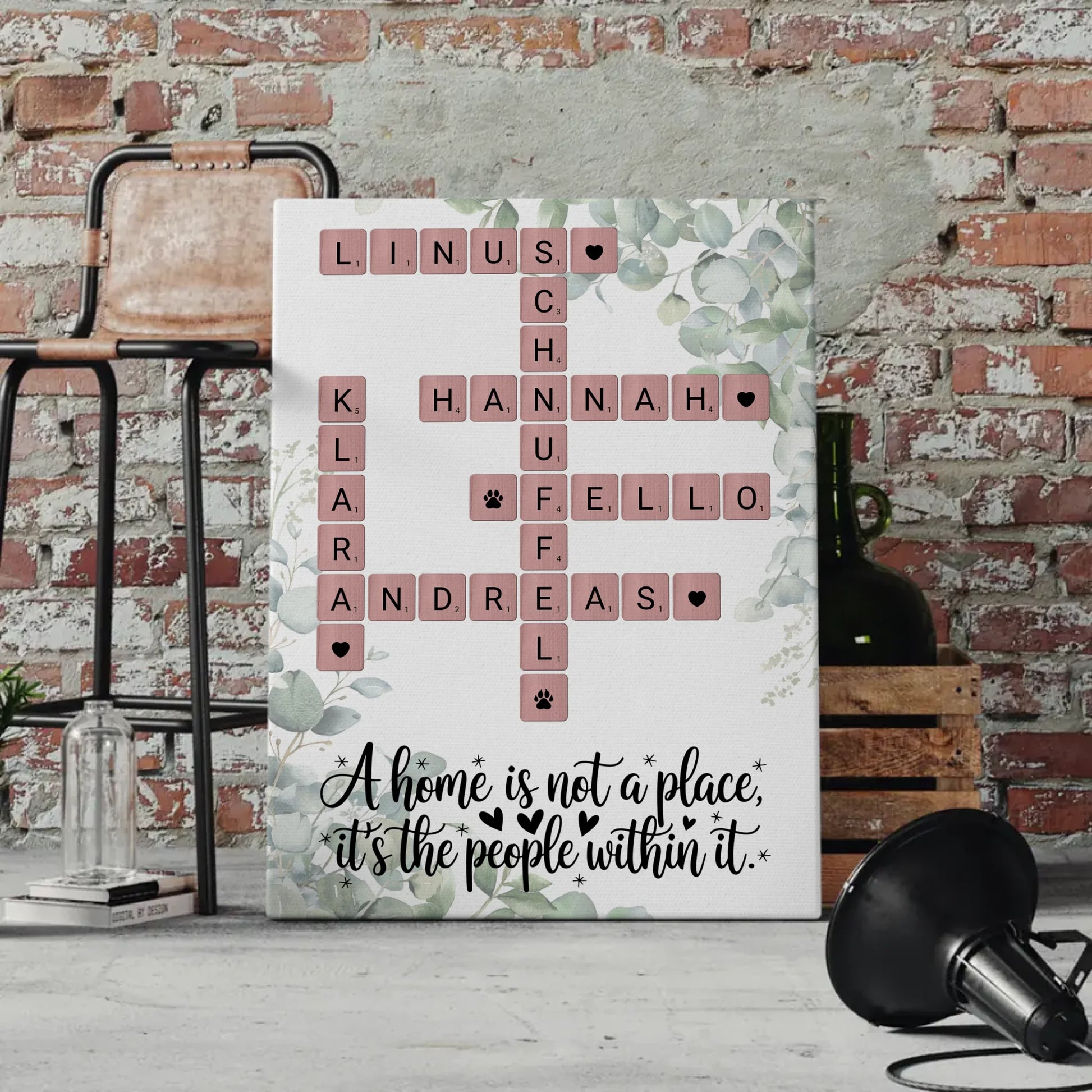 Familien Leinwand Home is Kreuzworträtsel mit Namen Wunschtext