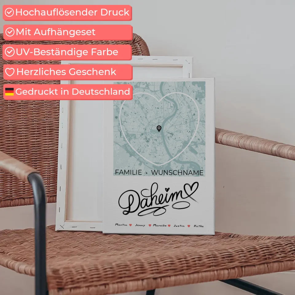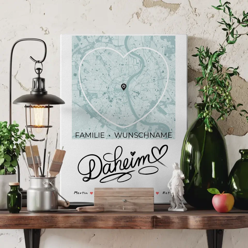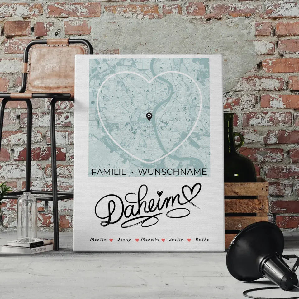 Familien Leinwand personalisiert Stadtkarte Daheim mit Nachname