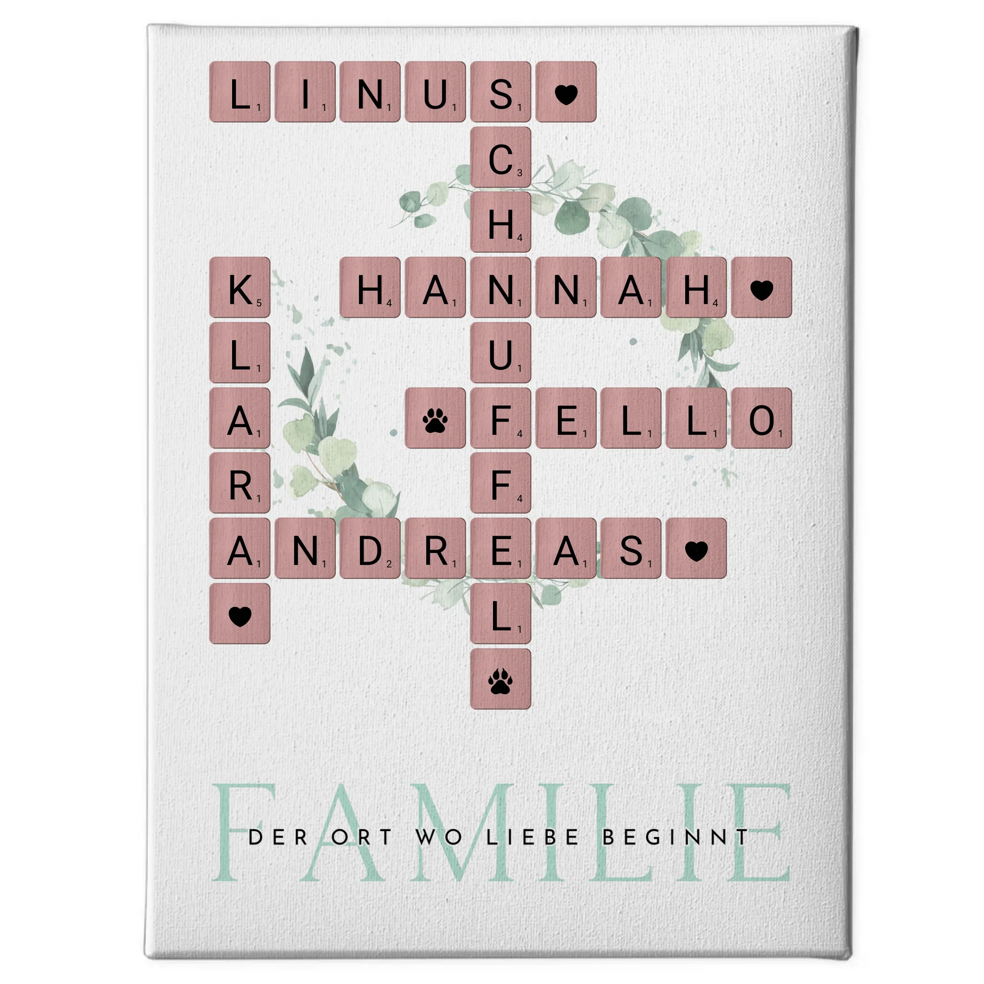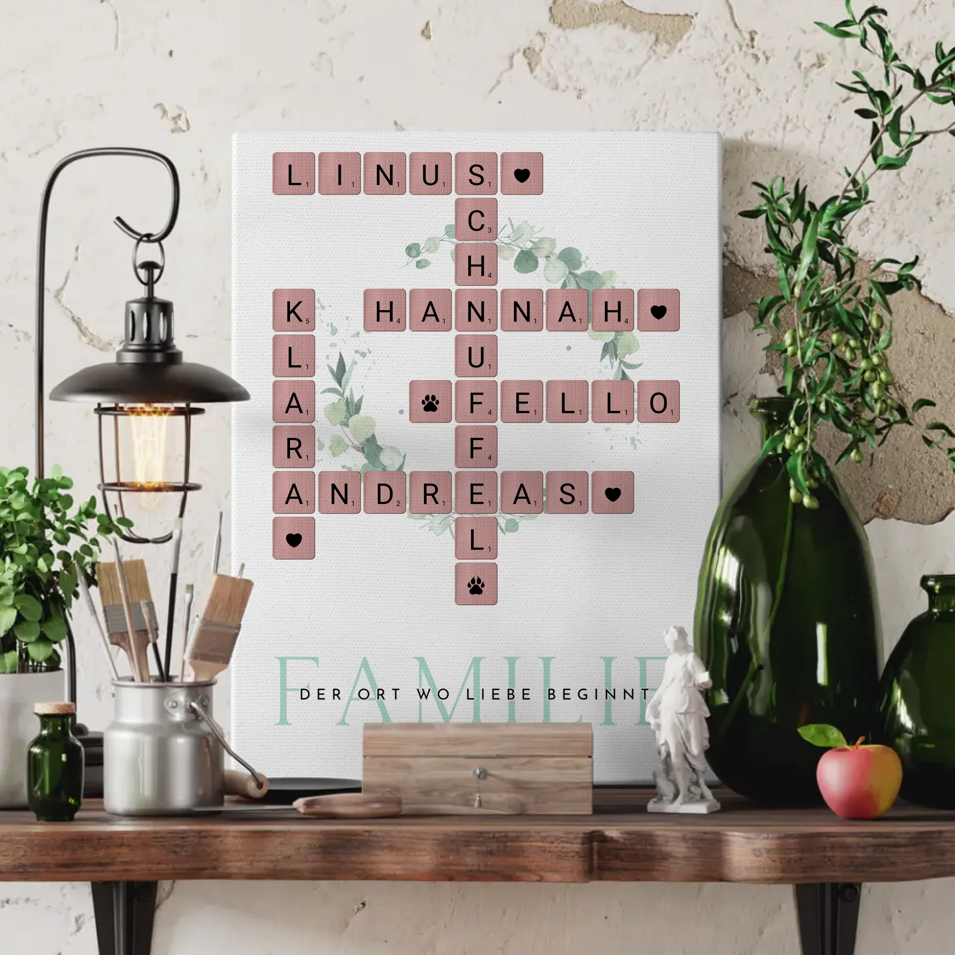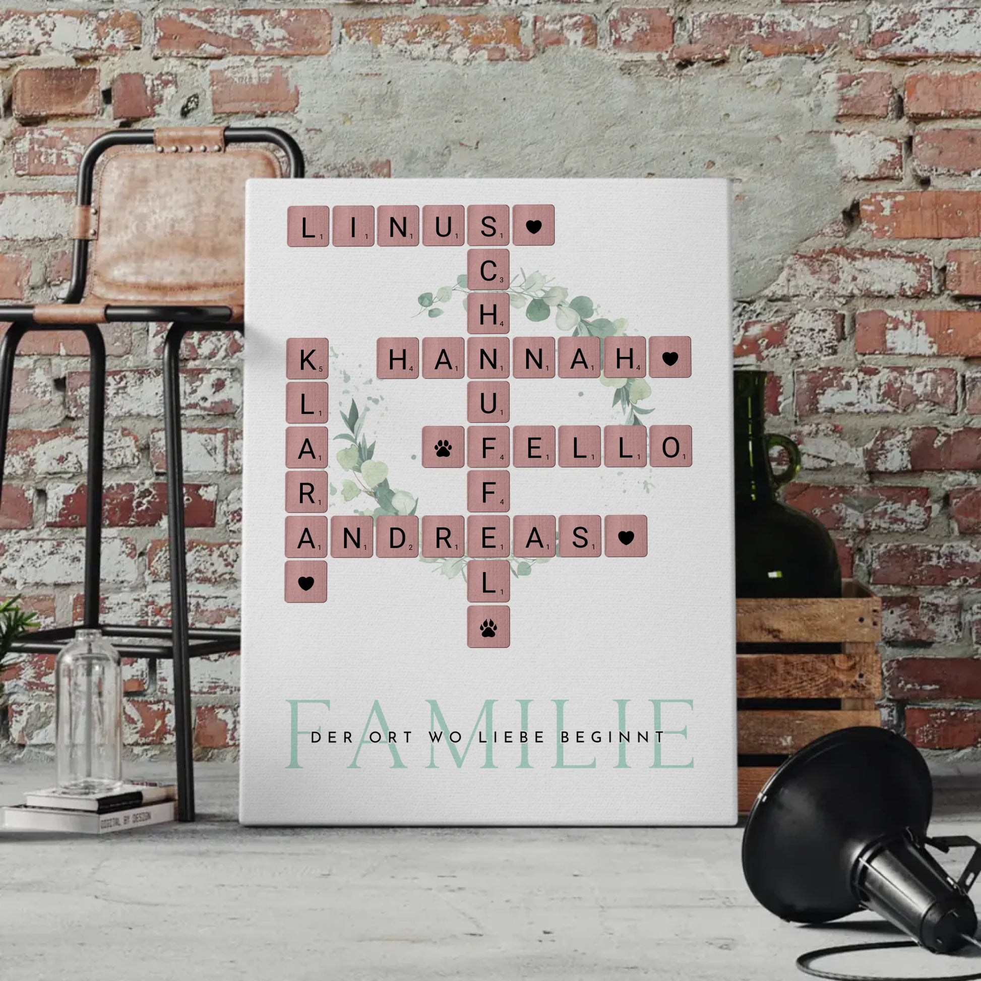 Familien Leinwand Wo Die Liebe Wohnt Kreuzworträtsel mit Namen