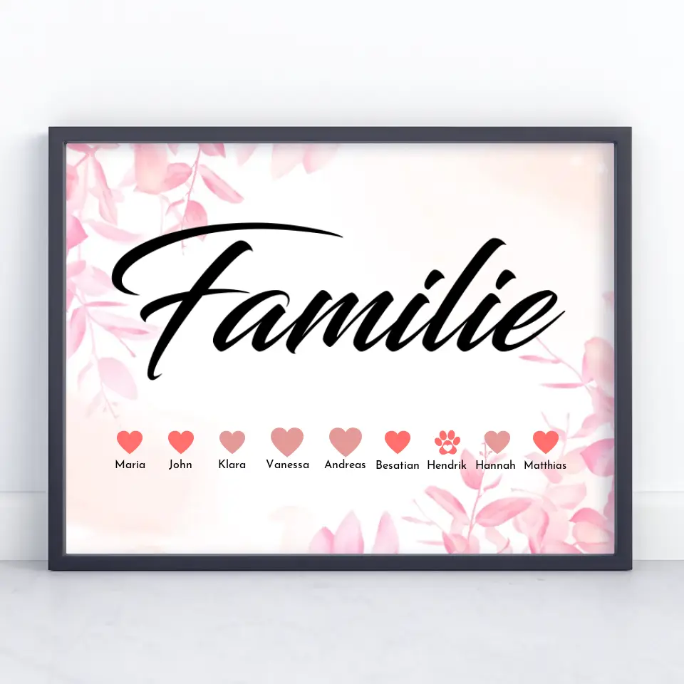 Dieses personalisierte Poster ist ein wunderschönes Geschenk für alle Familien Mitglieder egal ob Mama, Papa, Oma, Opa, Schwester oder Bruder. Perfekt zum Geburtstag, zu Weihnachten, zu Ostern, zum Muttertag oder zum Vatertag
