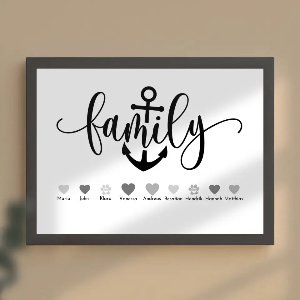 Du bist auf der Suche nach einem schönen tollen Geschenk? Dann ist unser Familien Poster Family Eltern Kinder Katze Hund Pferd Bis zu 20 Namen das perfekte personalisierbare Geschenk.