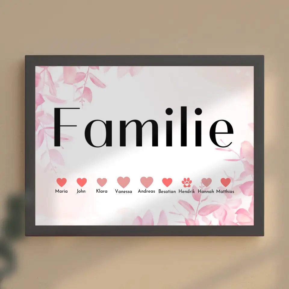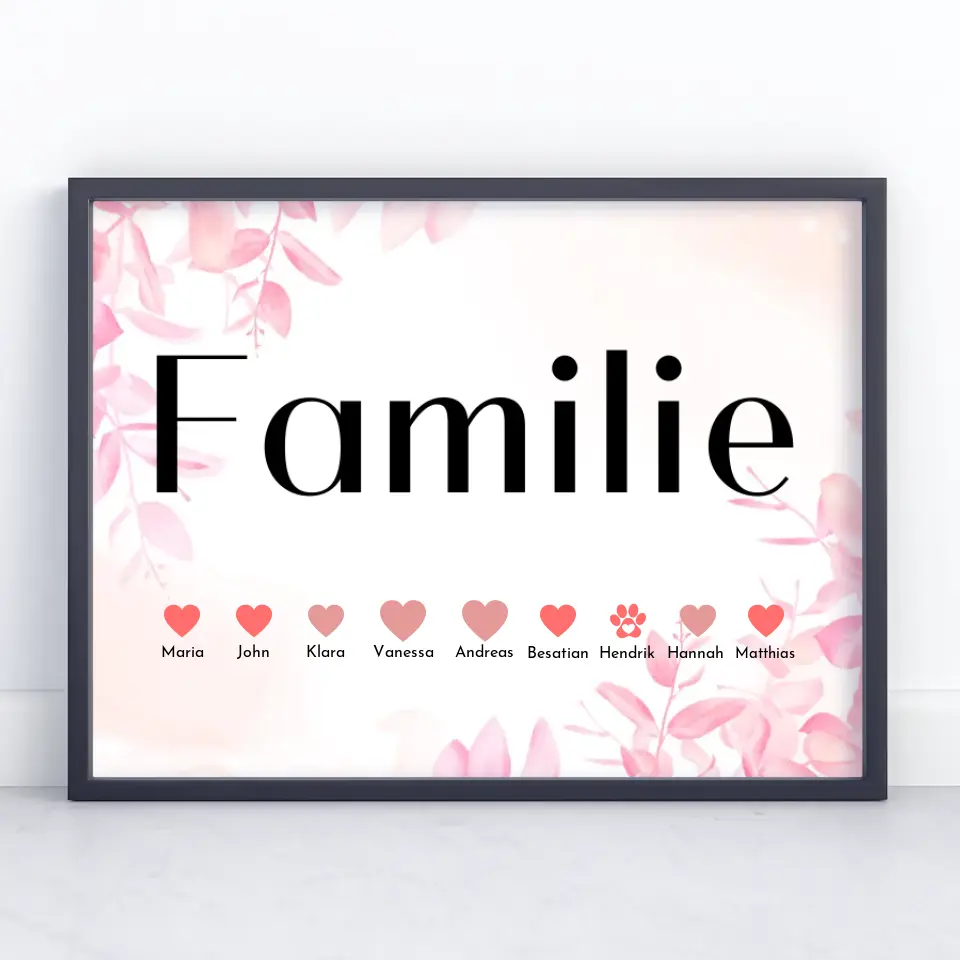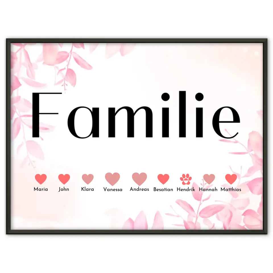 Familien Poster Rosa Blüten Eltern Kinder Katze Hund Pferd Bis zu 20 Namen