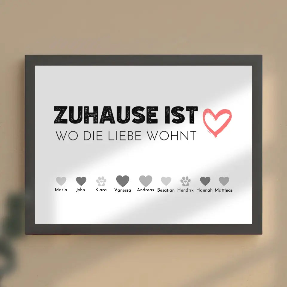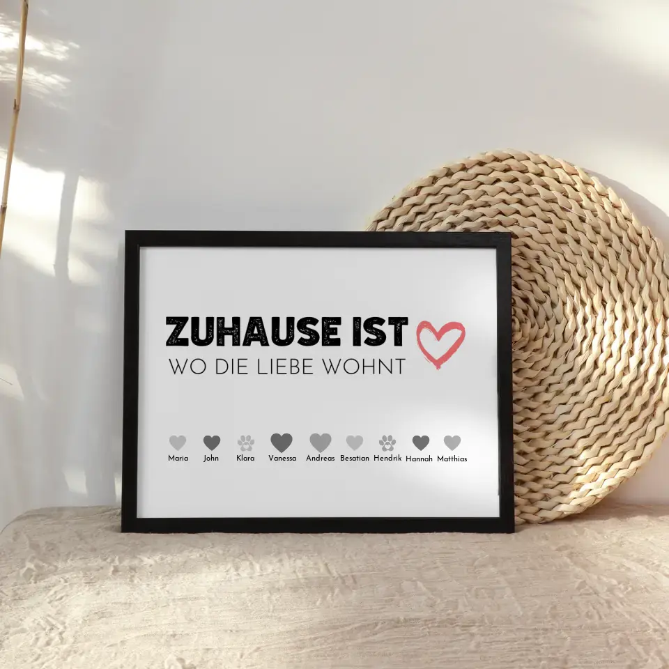 Unser Familien Poster Zuhause ist wo die Liebe wohnt Bis zu 20 Namen