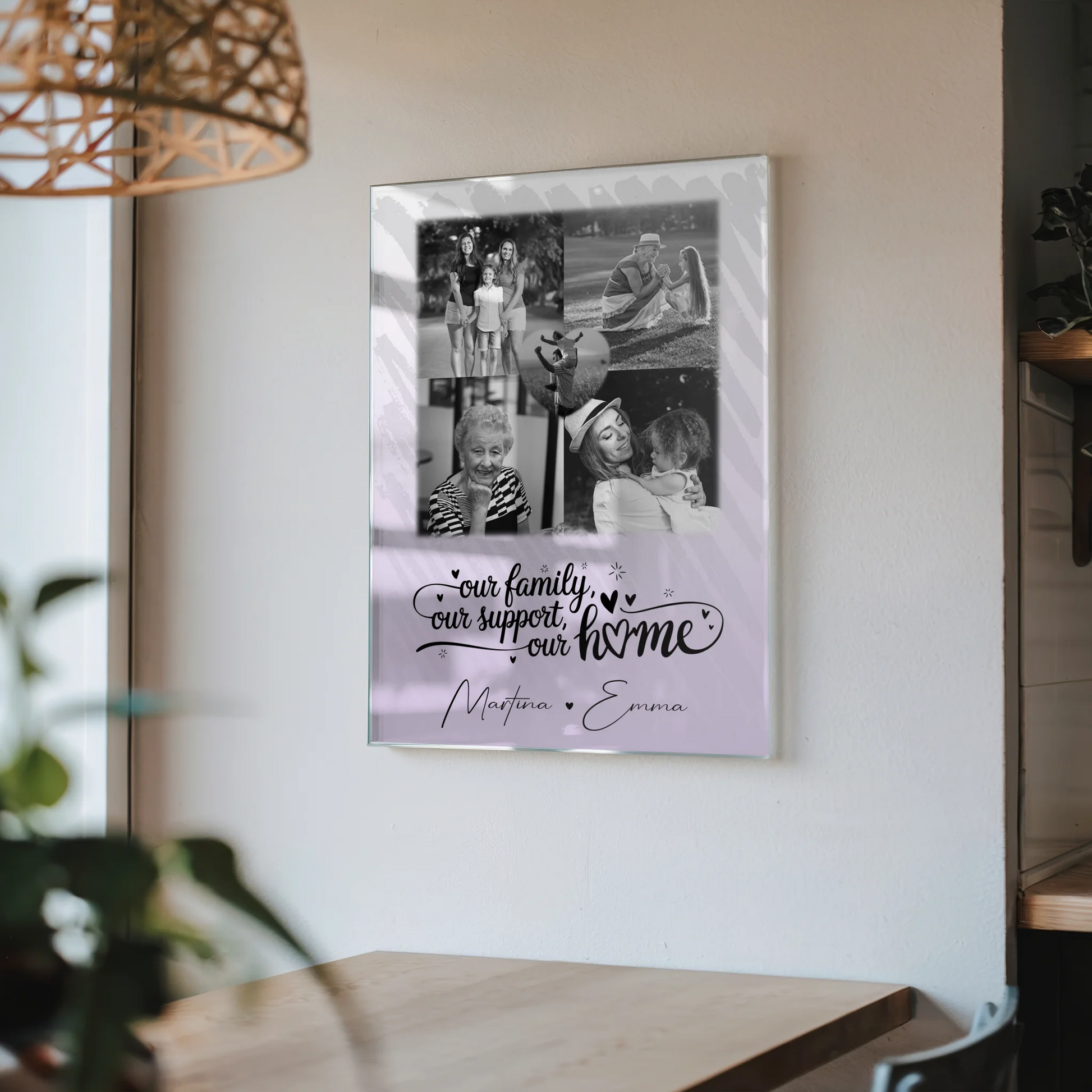 Entdecke das einzigartige Produkt Familienbild Personalisiert Acrylglas Bild mit 4 Fotos und Herzmotiv Our Family – ein wunderschönes, individuell gestaltbares Geschenk, das deine Familienliebe auf stilvolle Weise zum Ausdruck bringt. Dieses personalisierte Acrylglas eignet sich ideal, um 5 Fotos, einen eigenen Spruch oder Wunschtext sowie die Namen deiner Familienmitglieder zu vereinen und so ein einzigartiges Erinnerungsstück zu schaffen. Das elegante Design mit dem liebevollen Spruch Our family, our support, our home macht dieses Bild zu einem besonderen Highlight in jedem Zuhause. Ob Geburtstag, Weihnachten, Jubiläum oder einfach als liebevolle Geste – dieses Geschenk ist für jeden Anlass perfekt geeignet. Überrasche deine Familie mit diesem personalisierten Familienbild auf Acrylglas, das nicht nur durch seine hochwertige Verarbeitung besticht, sondern auch durch die persönliche Note, die es zu etwas Einzigartigem macht. Bestelle jetzt dein individuelles Familienbild Personalisiert Acrylglas Bild mit 4 Fotos und Herzmotiv Our Family und schaffe eine bleibende Erinnerung, die eure Verbundenheit widerspiegelt.