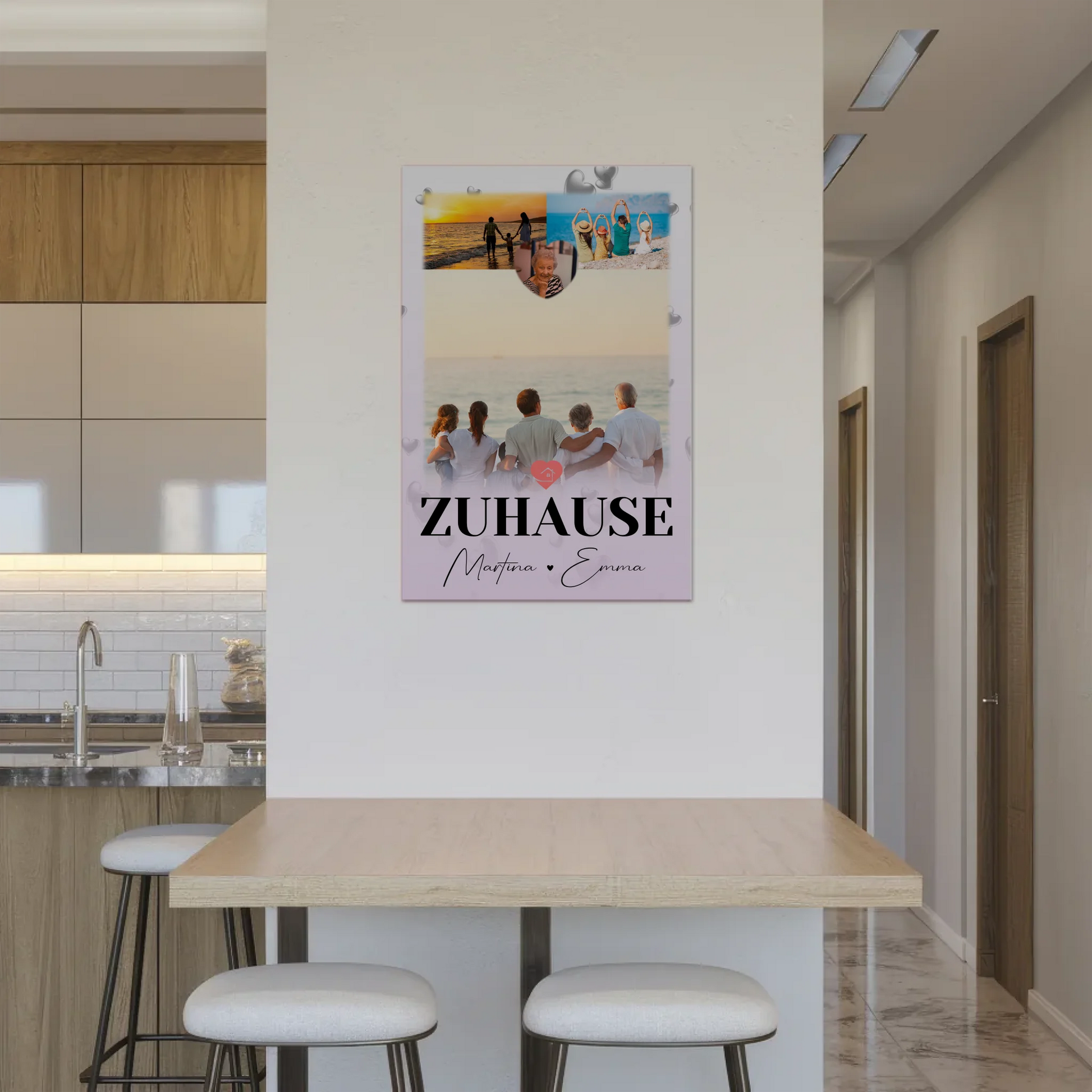 Personalisierter Familienbild Fotoboard mit 3 Fotos und Herz – Das perfekte Zuhause-Geschenk