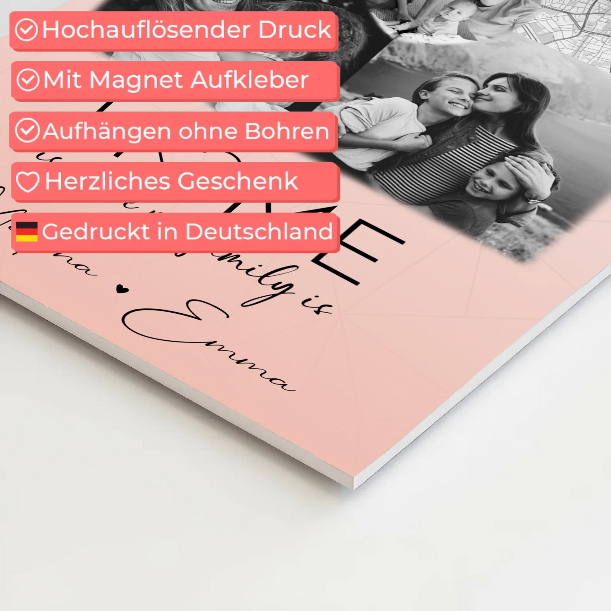 Familienbild Personalisiert mit 3 Fotos und Herz Foto Karte Where My Family Is – Das perfekte Geschenk für deine Liebsten