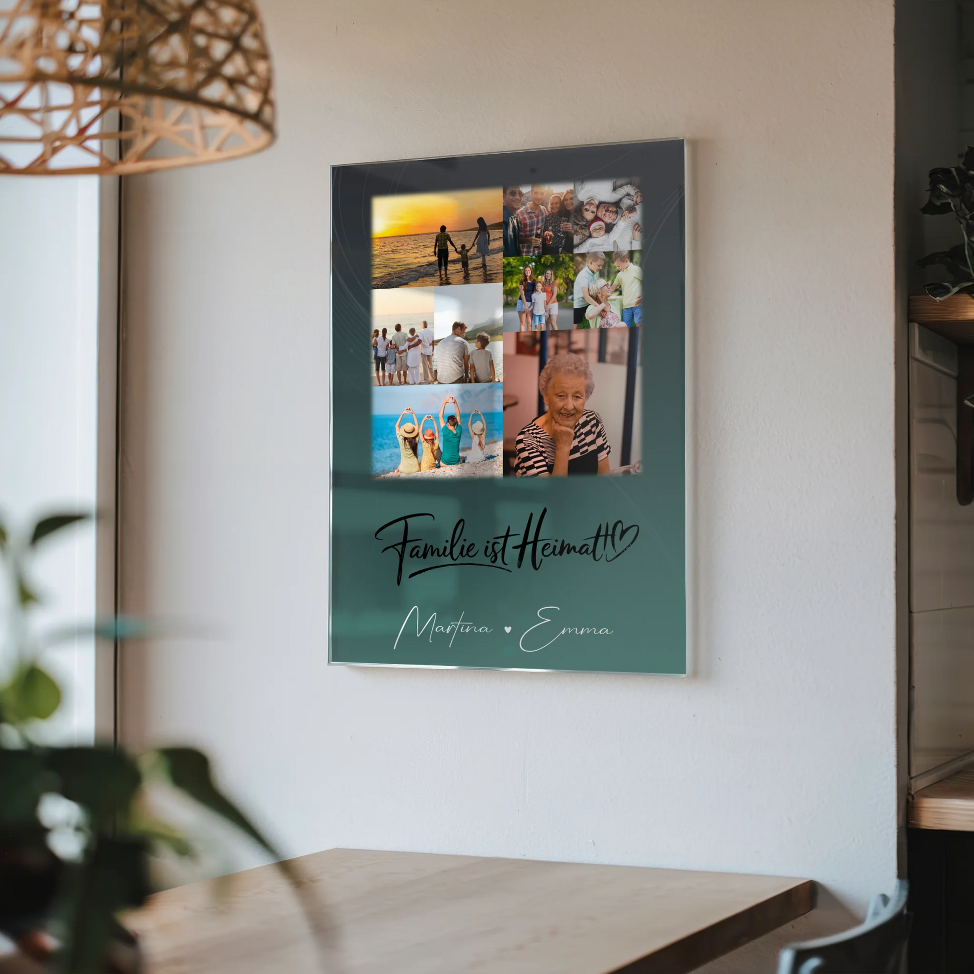 Mach dein Geschenk zu etwas ganz Besonderem mit unserem einzigartigen Familienbild Personalisiert mit 9 Fotos Familie ist Heimat Geschenk. Dieses individuell gestaltbare Poster, Leinwand oder Kissen vereint die schönsten Momente deiner Familie in einem stilvollen Design. Du kannst bis zu 9 Fotos, einen eigenen Spruch oder Wunschtext sowie die Namen deiner Familienmitglieder hinzufügen, um ein persönliches Unikat zu kreieren. Das Design trägt den inspirierenden Spruch: „Familie Ist Heimat“, der die Verbundenheit und Wärme deiner Familie perfekt widerspiegelt. Ob Geburtstag, Jubiläum, Weihnachten oder einfach nur, um deine Familie zu zeigen, wie viel sie dir bedeutet – dieses Geschenk ist für jeden Anlass geeignet. Es ist ideal für Familienmitglieder, die ihre gemeinsame Geschichte und Liebe auf eine besondere Weise festhalten möchten. Überrasche deine Liebsten mit einem individuellen Geschenk, das ihre Herzen berührt und für immer in Erinnerung bleibt. Gestalte jetzt dein persönliches Familienbild und schaffe ein einzigartiges Erinnerungsstück, das die Bedeutung von Familie auf stilvolle Weise zum Ausdruck bringt.