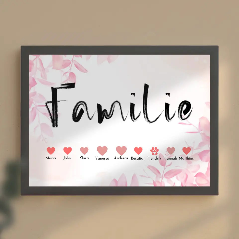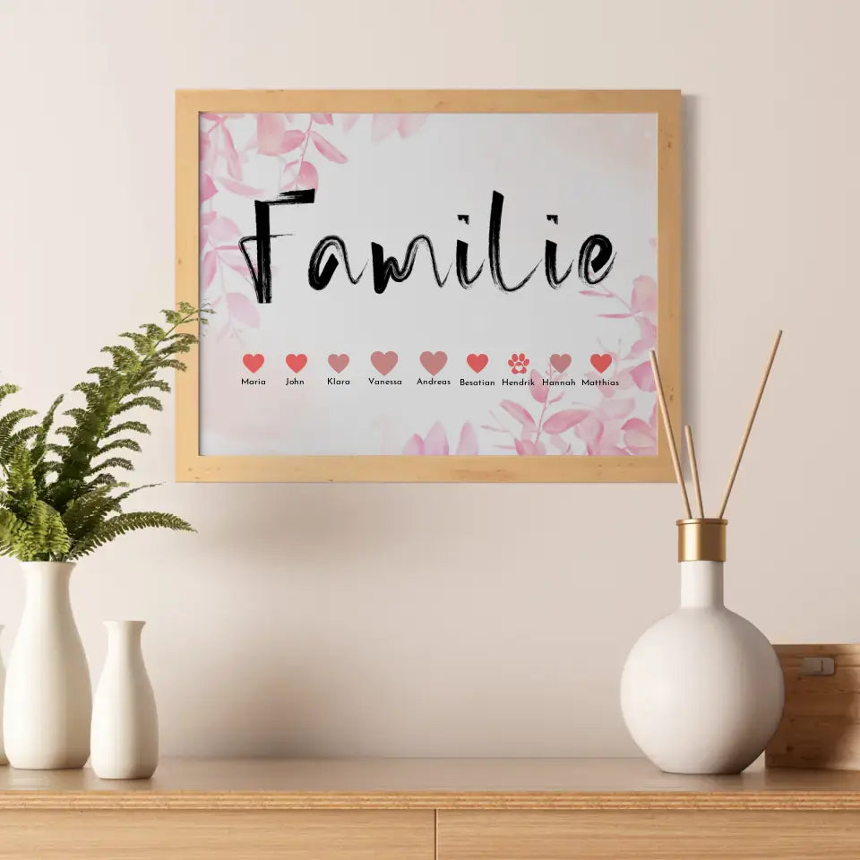 Familienposter Eltern Kinder Katze Hund Pferd Bis zu 20 Namen