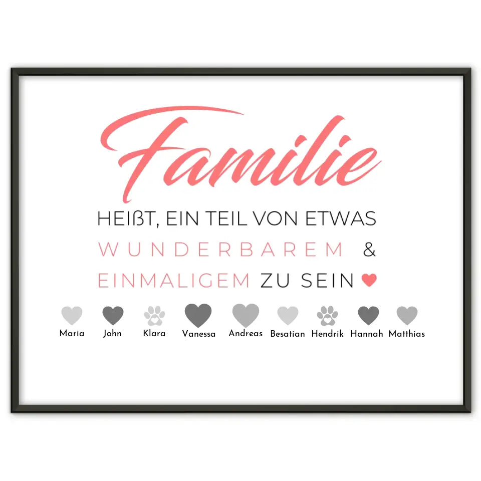 Du suchst ein schönes und individuelles Geschenk? Dann ist unser Familienposter Familie heißt Teil von etwas zu sein Bis zu 20 Namen das perfekte personalisierbare Geschenk.