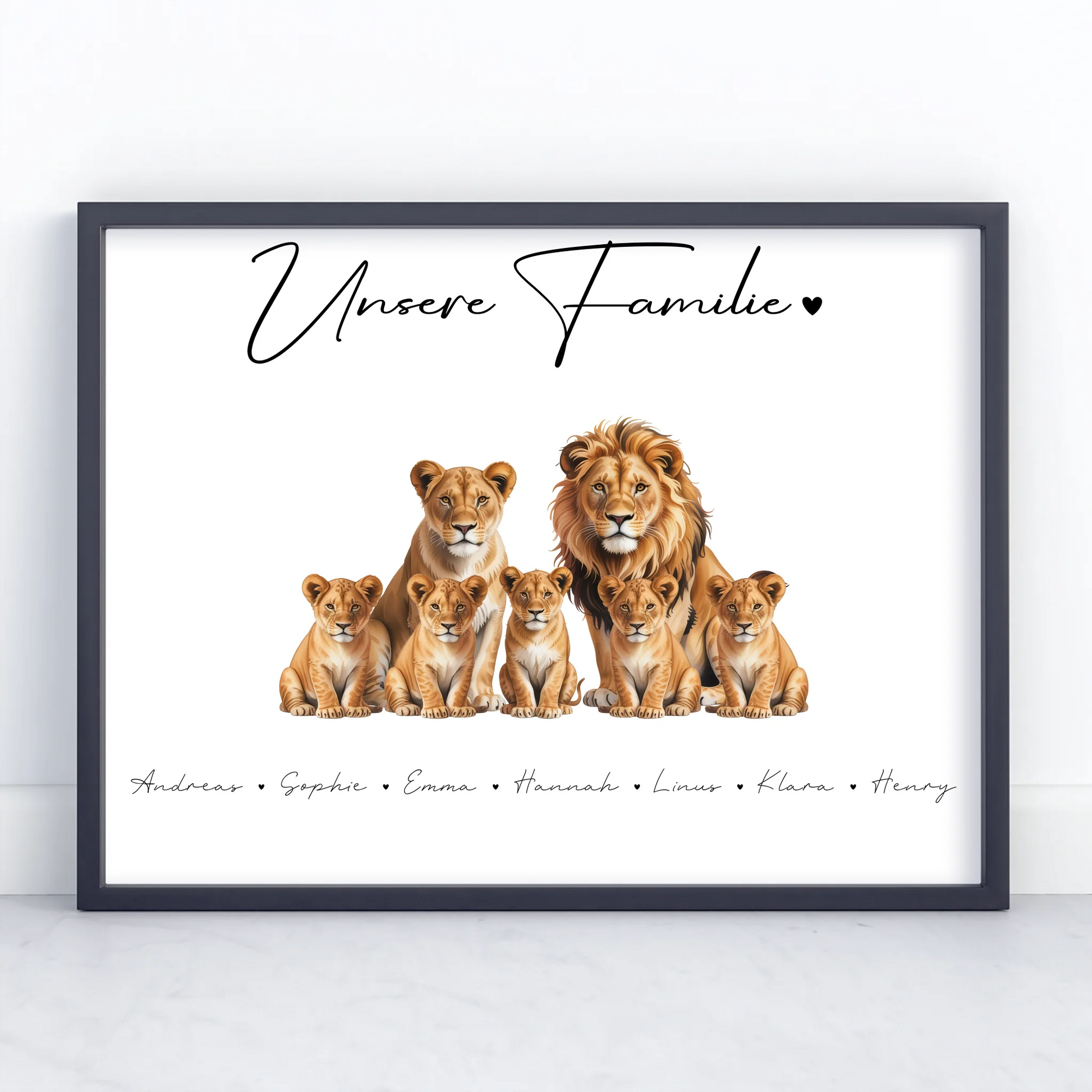 Familienposter Gestalten Löwen Familienporträt Geschenk für Oma Opa Mama Papa