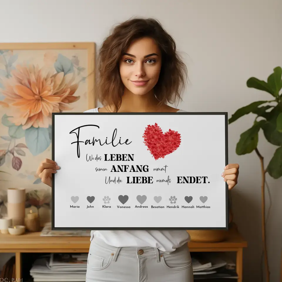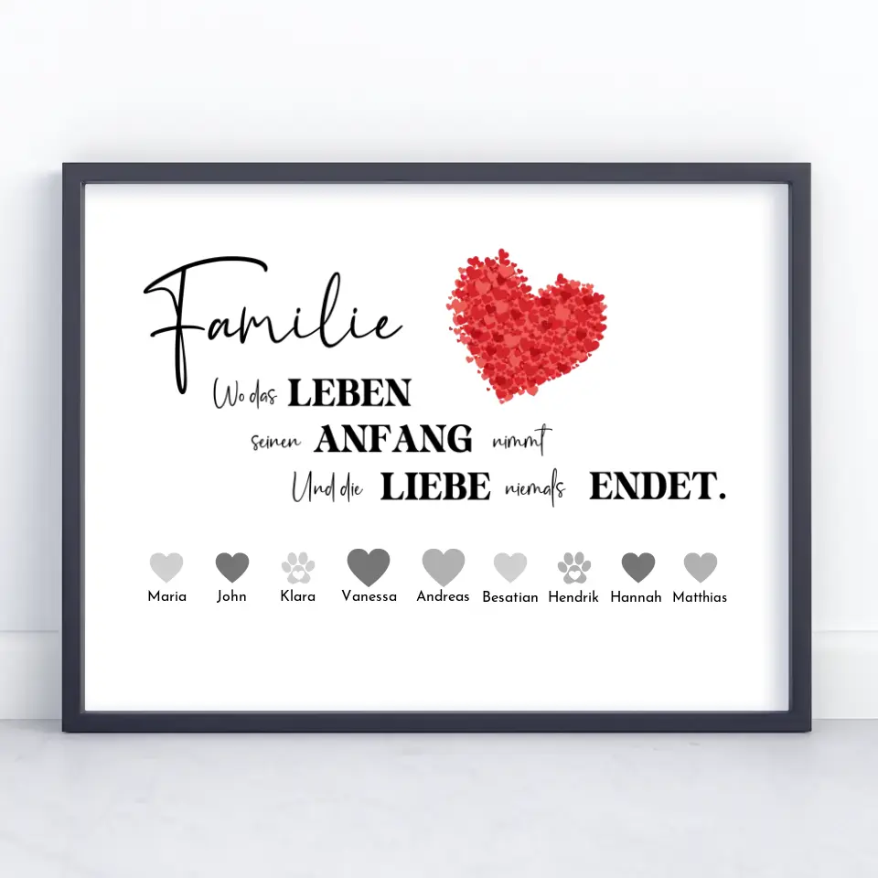 Familienposter mit Namen Familie Der Ort an dem Liebe beginnt Bis 20 Namen