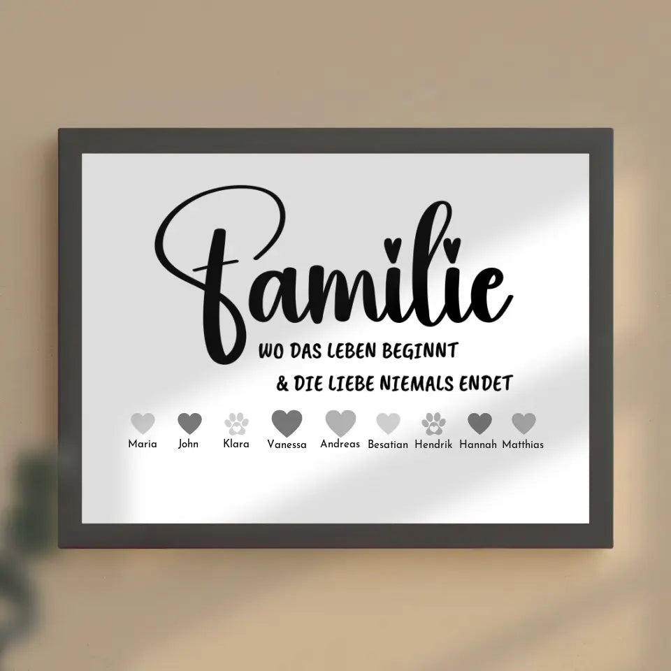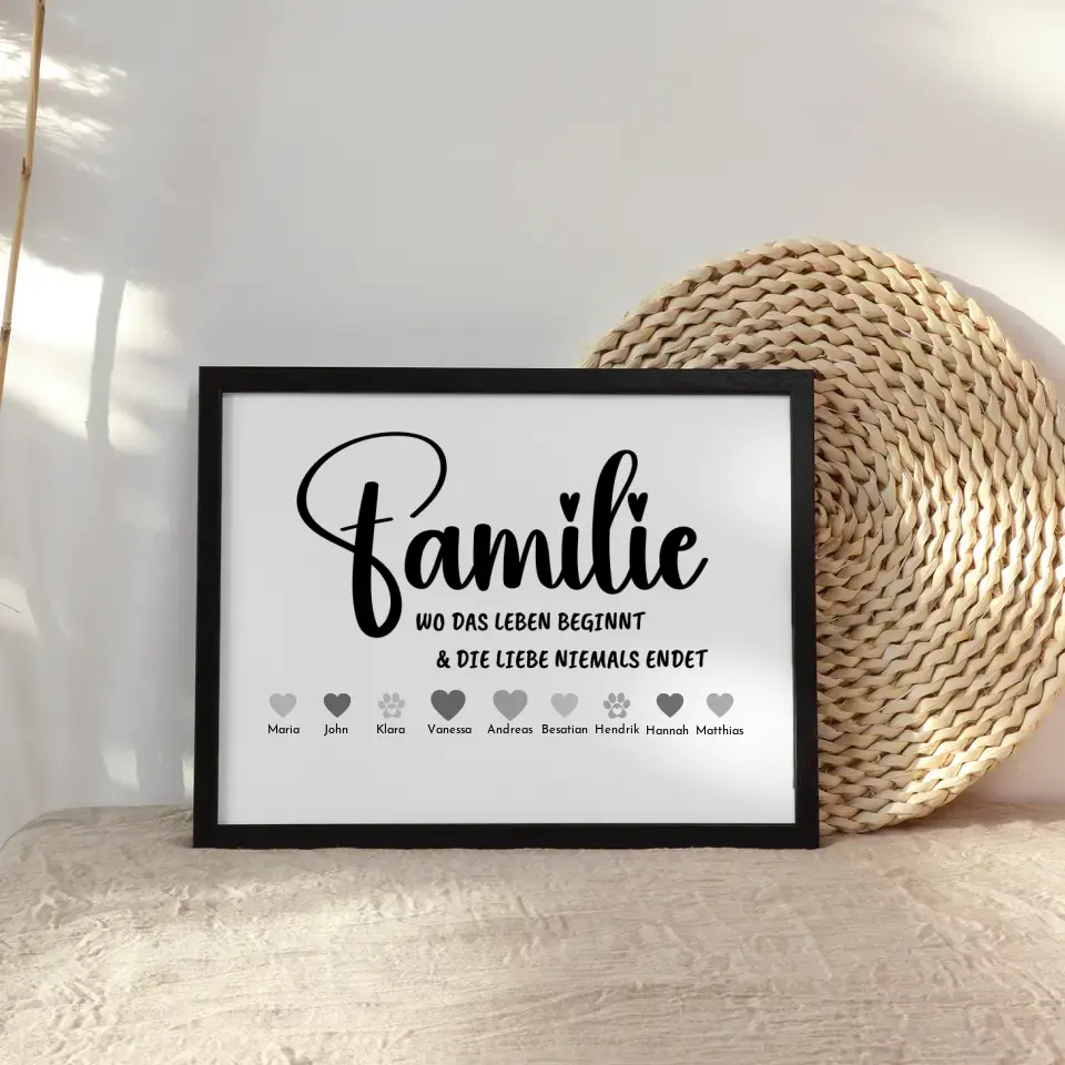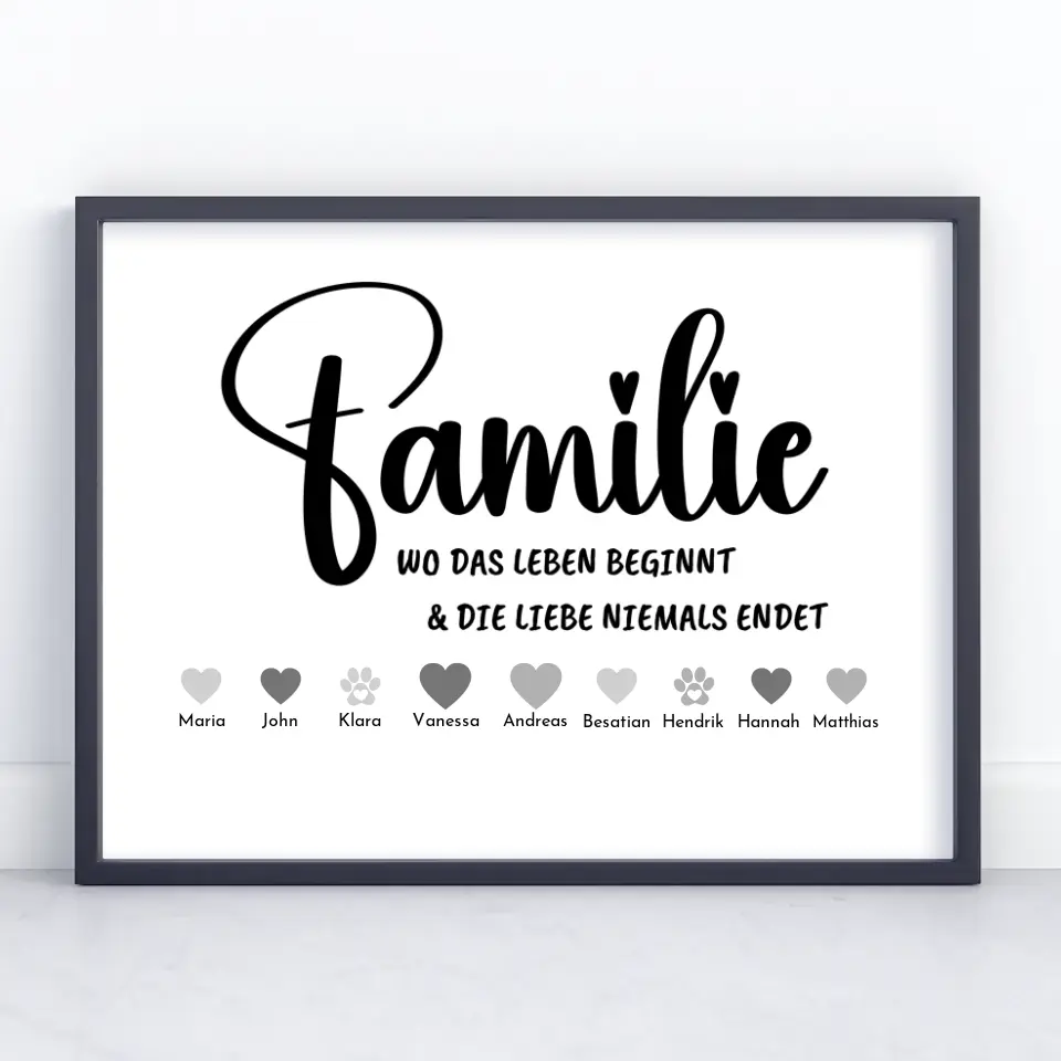 Familienposter Personalisiert Familie ist wo Leben beginnt Bis zu 20 Namen